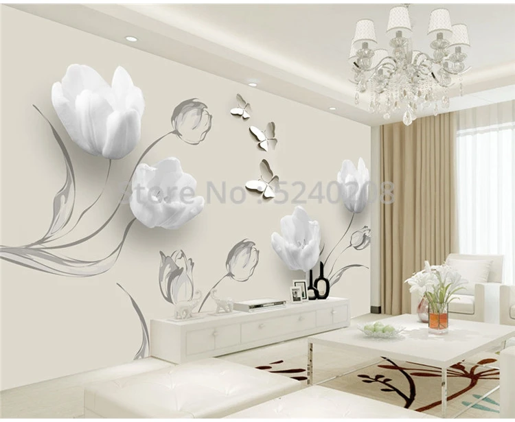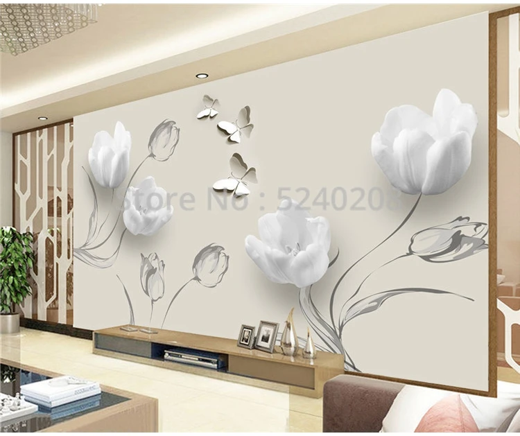 Современные Простые настенные росписи 3D стерео тюльпан бабочка цветок фотообои для гостиной телевизор водонепроницаемые Холст самоклеящиеся наклейки