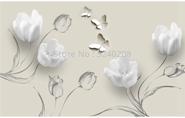 Пользовательские Настенные обои современные 3D стерео тюльпан Бабоч...
