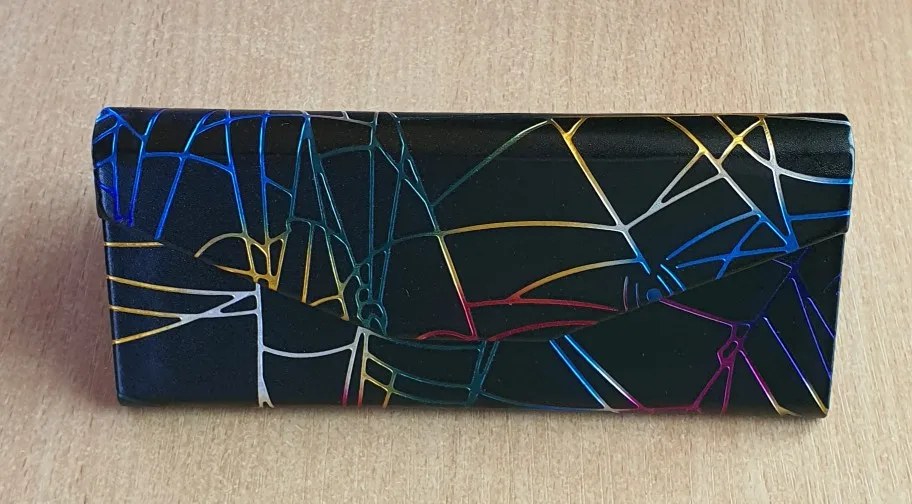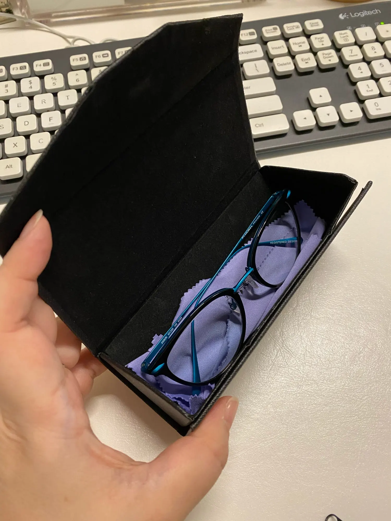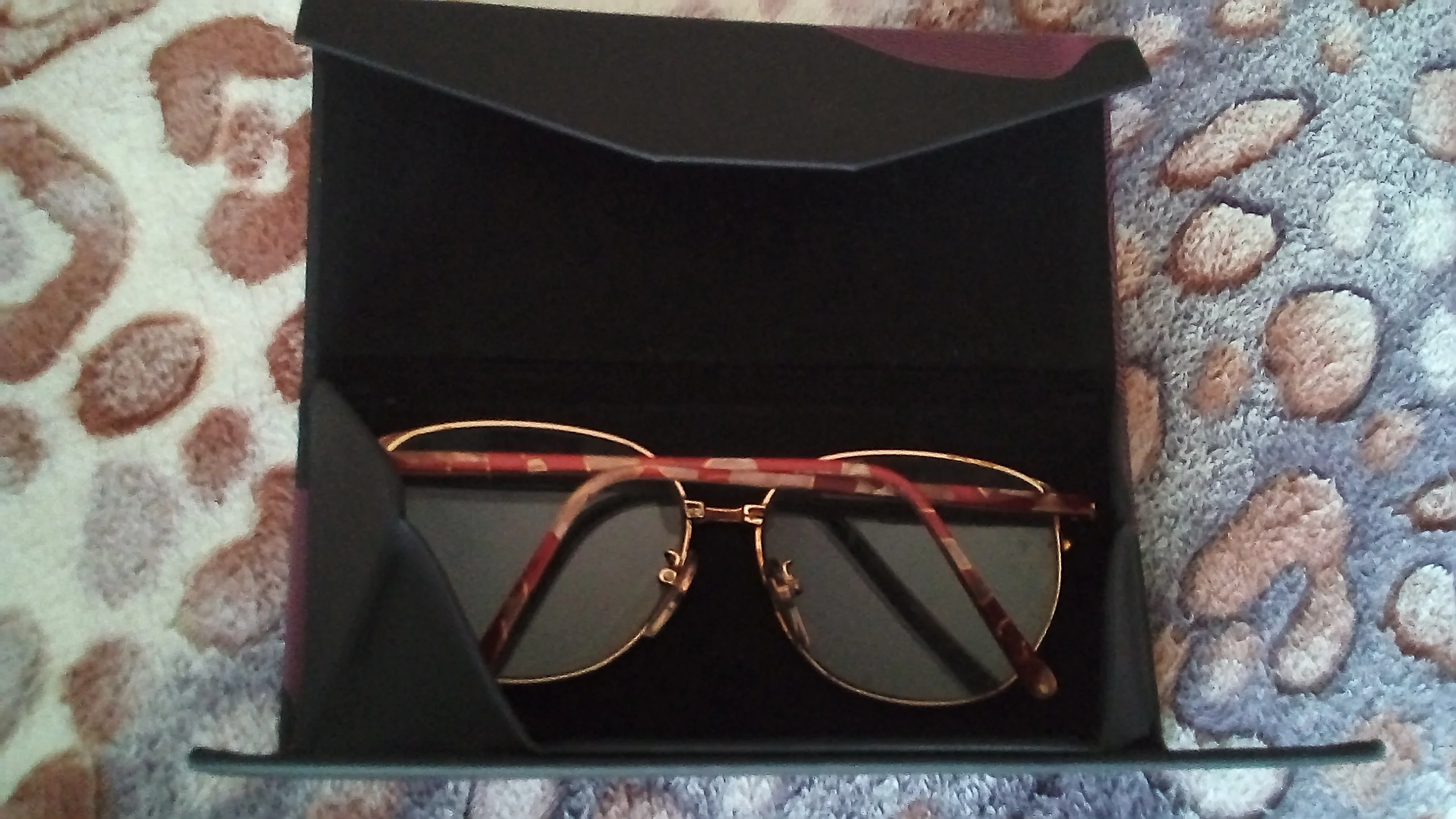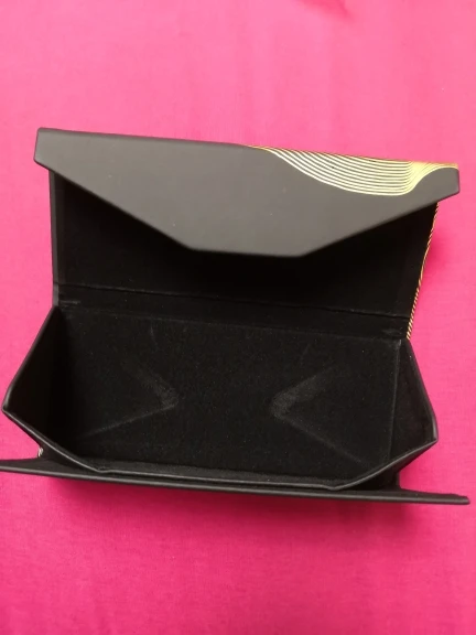 Классный чехол, внутри мягкий бархат, открыть не стыдно, он складывается и раскладыается. Очки надели, чехол сложили и убрали, места он не занимает. Продумано. Шёл долго, но такими были изначально условия.