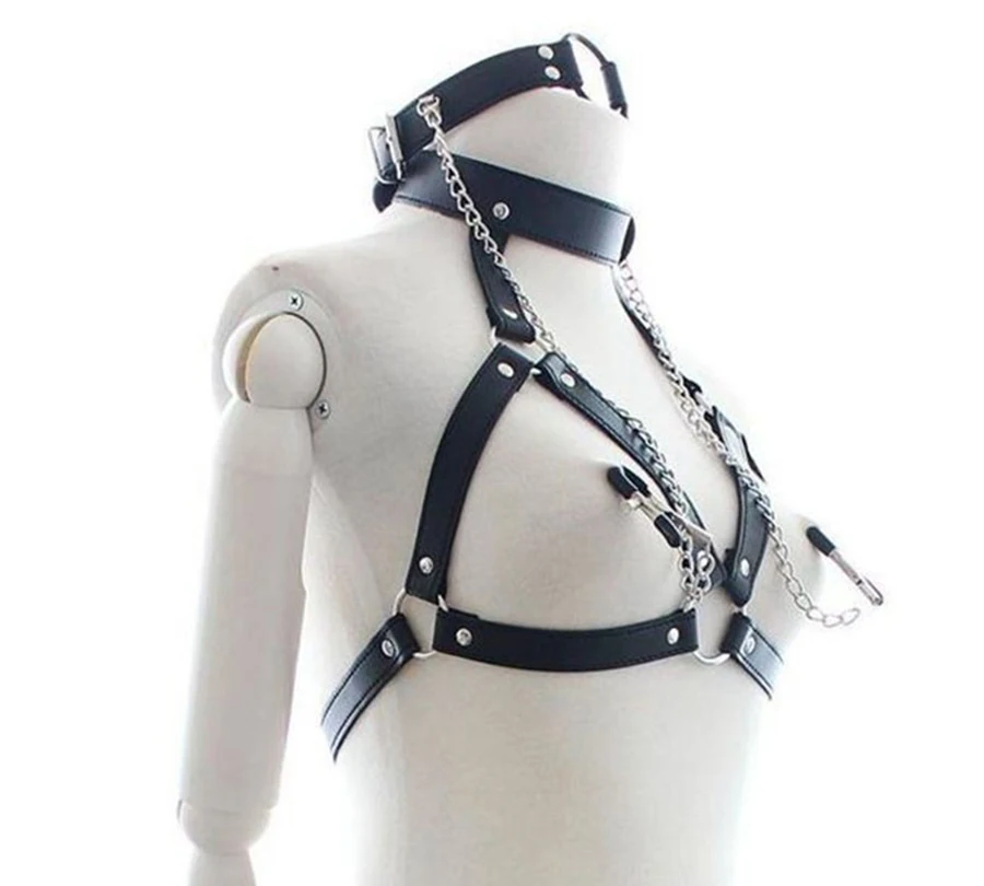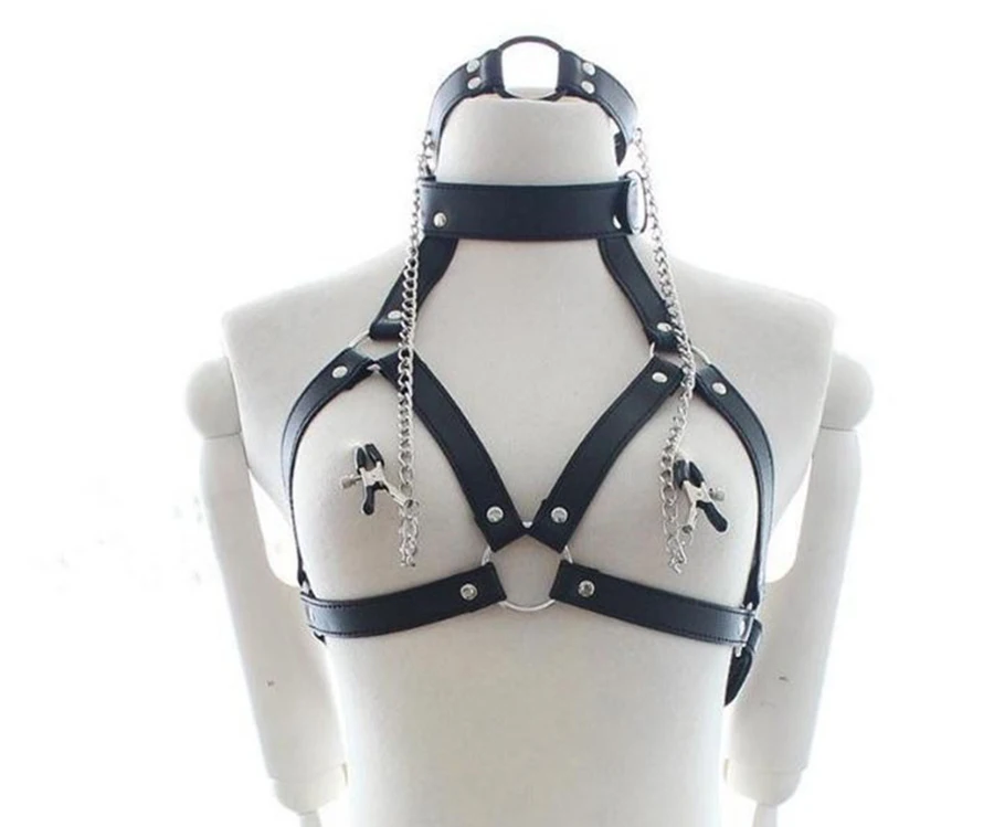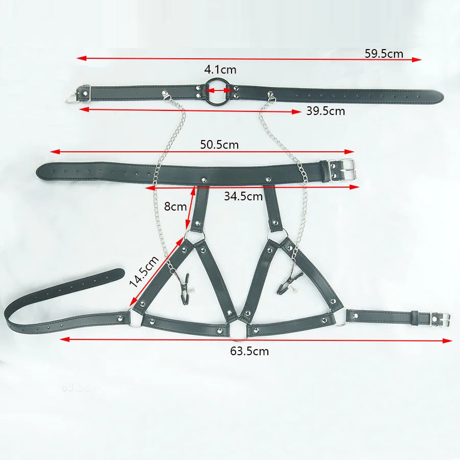 Набор для связывания 3 в 1, Женский кляп-кольцо для рта, зажимы для сосков, ошейник для БДСМ, кожаный бюстгальтер без чашек, секс-игрушки для взрослых