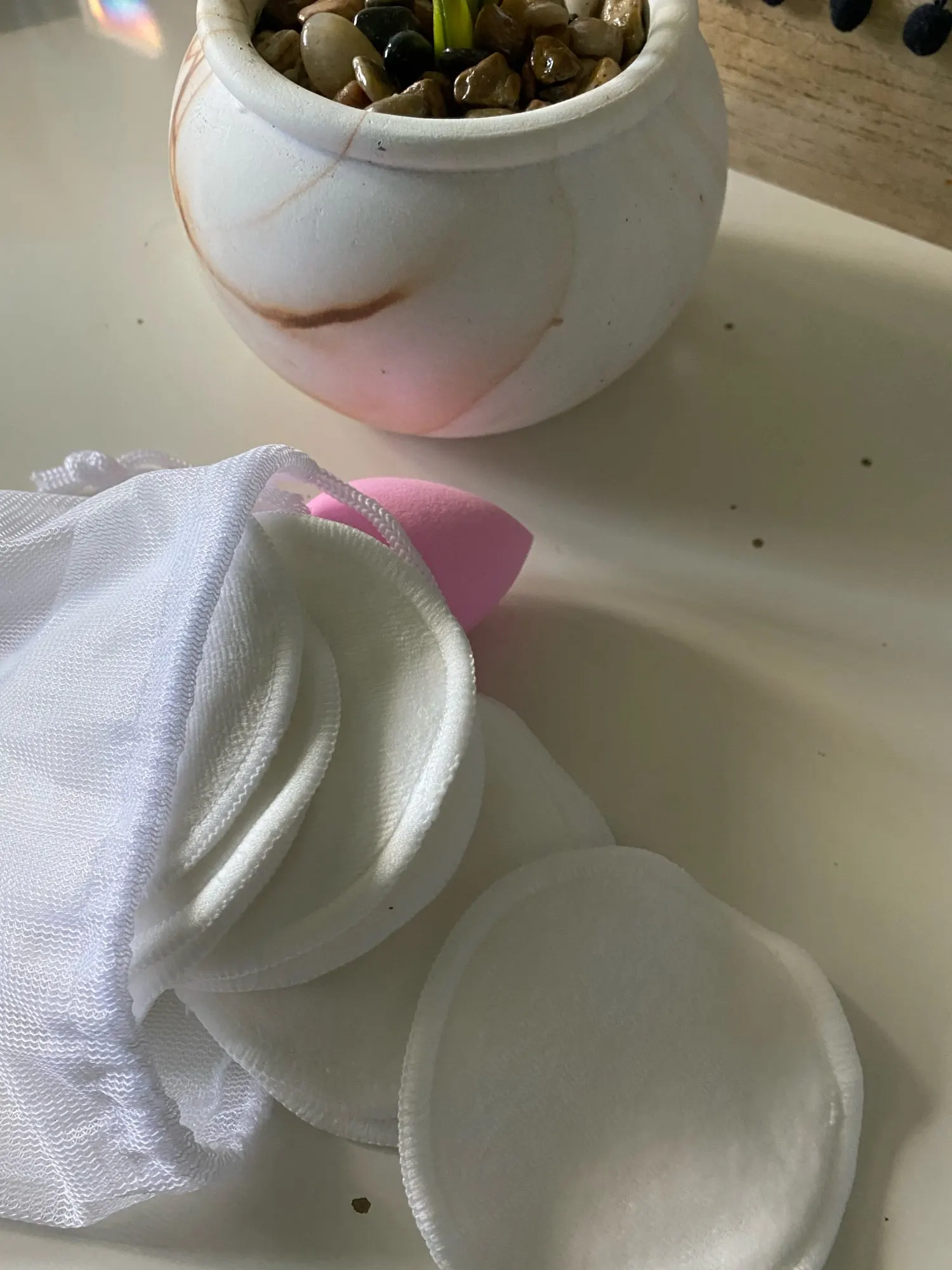 Диски очень мягкие, и мое первое впечатление, когда я использовал их в первый раз, было очень удовлетворительным. Он отлично удалил макияж, после использования средства для снятия макияжа. Я не знал, что это то, что мне нужно, пока не купил их. Beauty blender я еще не пробовал, но выглядит хорошо. Я положил их в стирку, как они прибыли, потому что они действительно не приходят, как очень защищены, но это нормально.