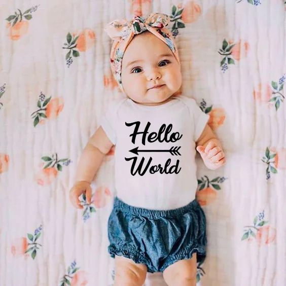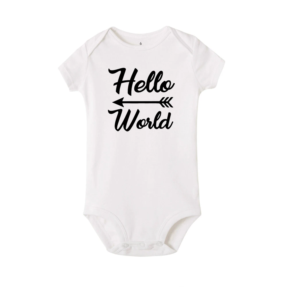 Детские летние комбинезоны Hello World, милая Одежда для маленьких мальчиков и девочек, детский цельнокроеный комбинезон с коротким рукавом в стиле унисекс