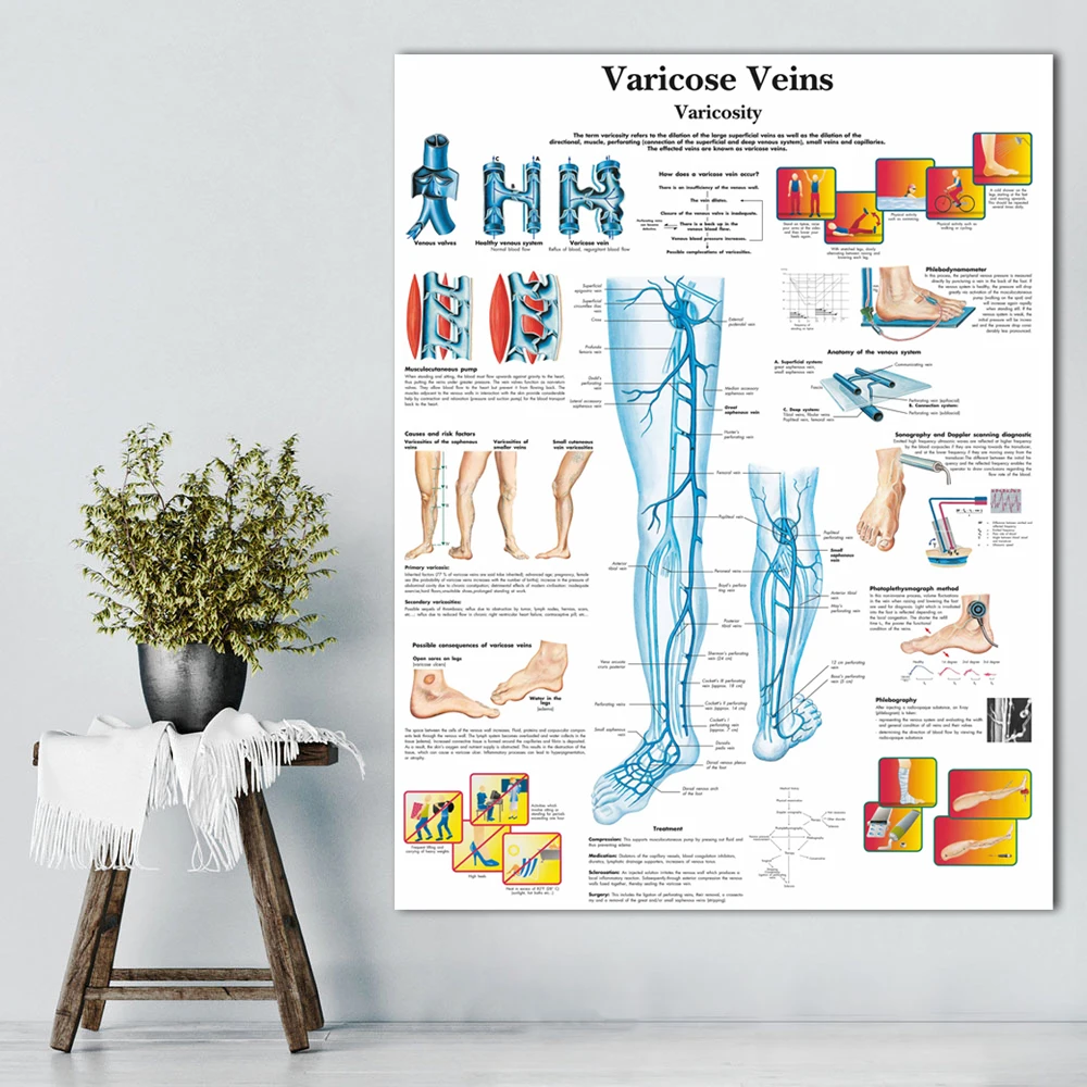 WANGART варикозное расширение вен диаграмма холст с печатью постера картина настенные картины для медицинского образования доктора офис класс