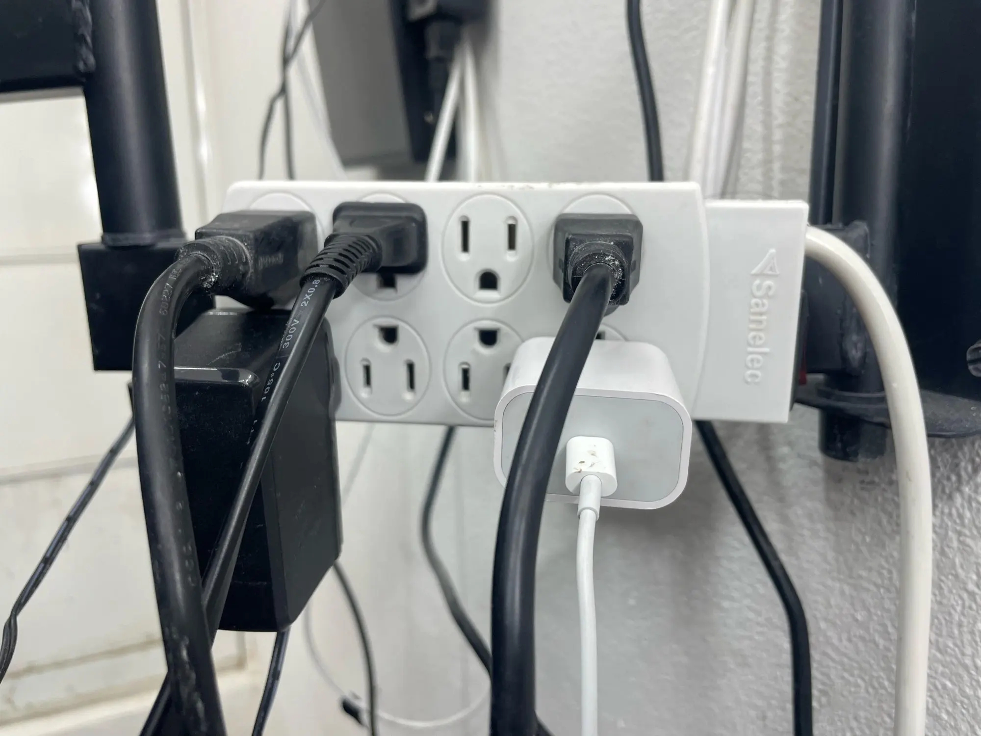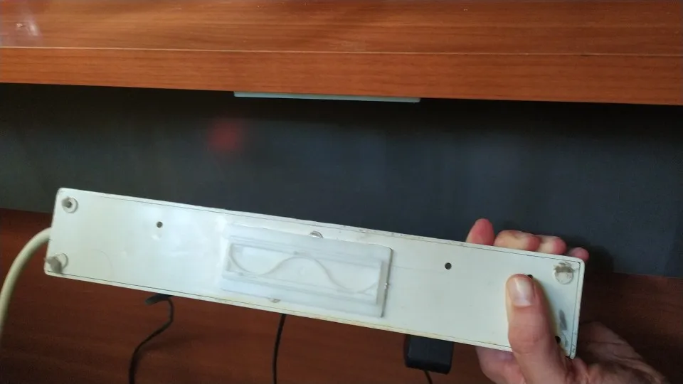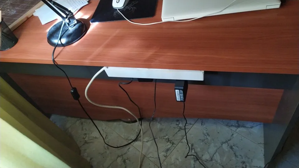 Всё хорошо приклеилось на внутренней стороне стола. Сетевой фильтр на пять розеток держит.