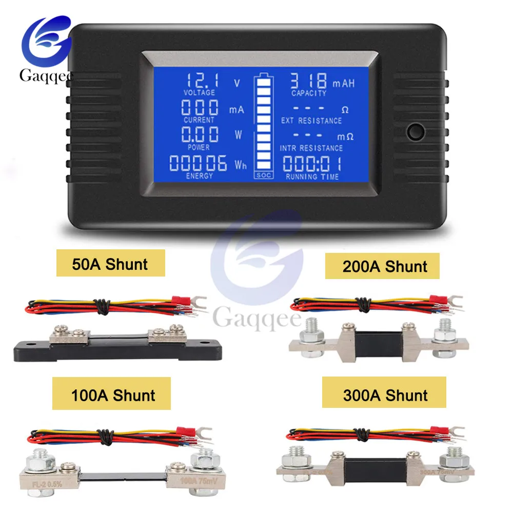 PZEM-015 DC Многофункциональный тестер батареи,Этот измеритель в основном используется для тестирования всех видов напряжения батареи, тока разряда, мощности разряда, сопротивления разряда, внутреннего сопротивления, емкости, энергии сброса, энергопотребления и времени работы,И отображает данные измерений с помощью ЖК-экрана.PZEM-015: диапазон измерения 300A (используется внешний шунт, может совпадать с 50A, 100A, 200A, 300A четыре вида шунта).Описание функции:Напряжение:Диапазон измерения: 0-200 В. (когда тестовое напряжение меньше 8 в, используйте независимый режим питания)Формат дисплея: менее 10 в дисплей как: 9,99 вДисплей менее 100 в как: 99,9 ВДисплей более 100 в как: 199 вМинимальное разрешение: 0,01 вПусковое тестовое напряжение: 0,05 ВТочность измерения: 1%• Сила тока:Диапазон измерения: 0-300A может установить 50A, 100A, 200A,300A четыре диапазона зависят от внешнего шунта, заводской по умолчанию является 100A.Формат дисплея: менее 1А дисплей как: 999mA<10А дисплей как: 9.99A<100A дисплей как: 99.9A≥ 100A дисплей как: 199AДискретность: 1mAПусковой тестовый ток: 20 мАТочность измерения: 1%Мощность:Диапазон измерений: 0-60000 ВтФормат дисплея: < 10 Вт дисплей как: 9,99 Вт<100 Вт как: 99,9 Вт<1000 Вт как: 999 Вт<10000 Вт дисплей как: 9,99 кВт≥ 10000 Вт дисплей как: 19,9 кВтМинимальное разрешение: 0,01 ВтМощность пускового теста: 0,2 ВтТочность измерения: 1%Сопротивление:Сопротивление = напряжение/токДиапазон измерений: 0-1000ohmФормат дисплея: < 100 Ом дисплей как: 99,9 Ом≥ 100 Ом дисплей как: 999 ОмКогда диапазон тестирования или ток равен нулю, он отображает "---"Дискретность: 0.1ohmТочность измерения: 1%Внутреннее сопротивление:Внутреннее сопротивление = (полное напряжение-напряжение нагрузки)/ток нагрузки, когда напряжение нагрузки превышаетМаксимальное напряжение, внутреннее сопротивление нулевое.Диапазон измерений: 0-999 ммФормат дисплея: 999 миллиом, когда диапазон тестирования или ток равен нулю, он отображает "---".Минимальное разрешение: 1 миллиомТочность измерения: 1%Примечание:Перед тем, как проверить внутреннее сопротивление, вы должны установить полное напряжение в зависимости от типа батареи, после того, как он полностью заряжен выМожет использовать его для тестирования;Если вы не полностью зарядите его, вы можете установить аккумулятор без напряжения нагрузки, это полное напряжение, затем проверить; Внутреннее сопротивление не является фиксированным значением, чем больше батарея разряжена, чем больше сопротивление.Емкость:Диапазон измерений: 0-1000AHФормат дисплея: < 1AH дисплей как: 999 мАч<10AH дисплей как: 9.99AH<100 Ач дисплей как: 99,9 Ач<1000AH дисплей как: 999AHМинимальное разрешение: 1 мА · чТочность измерения: 1%Примечание:Тестирование емкости батареи-это Кумулятивный процесс разряда тока по сравнению со временем, ему нужно некоторое время, время зависит от тока разряда;Перед тем, как проверить емкость, вы должны задавать полное напряжение и отключение напряжения зависит от типа батареи, после того, как он полностью заряжен, вы можете использовать его для тестирования разрядки;Когда энергия сброса не отображается, это означает, что разрядка закончена, это значение отображения емкости является емкостью аккумулятора.Сброса энергии:Энергия сброса отображается через символ батареи, всего 10 сеток, Каждая сетка представляет 10% энергии.Энергия сброса рассчитывается через значение тока напряжения батареи, перед тестом необходимо 