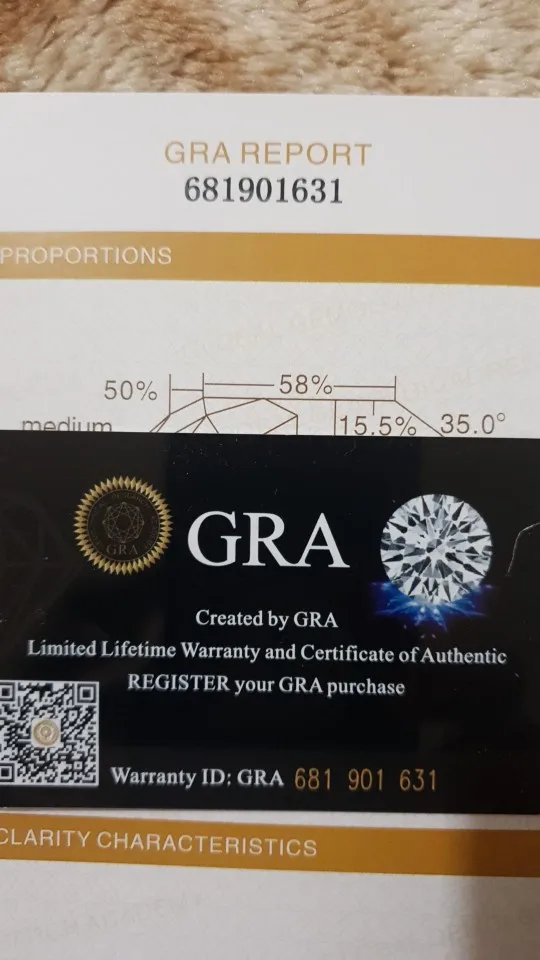 Pack with jewelry box and moissanite certificate