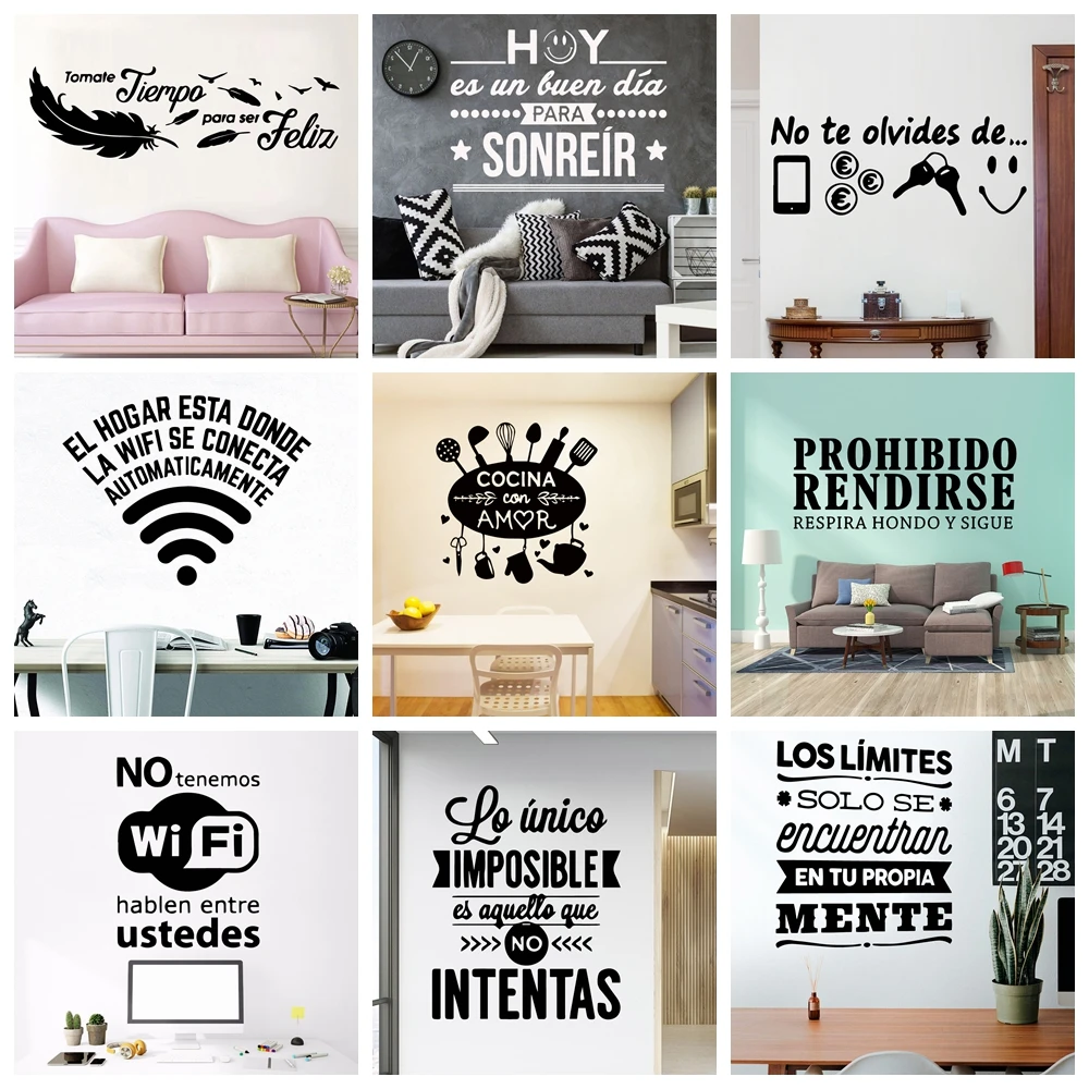 Забавные испанские предложения, водонепроницаемые настенные наклейки, настенные художественные Декорации для детской комнаты, гостиной, домашнего декора, настенные художественные наклейки