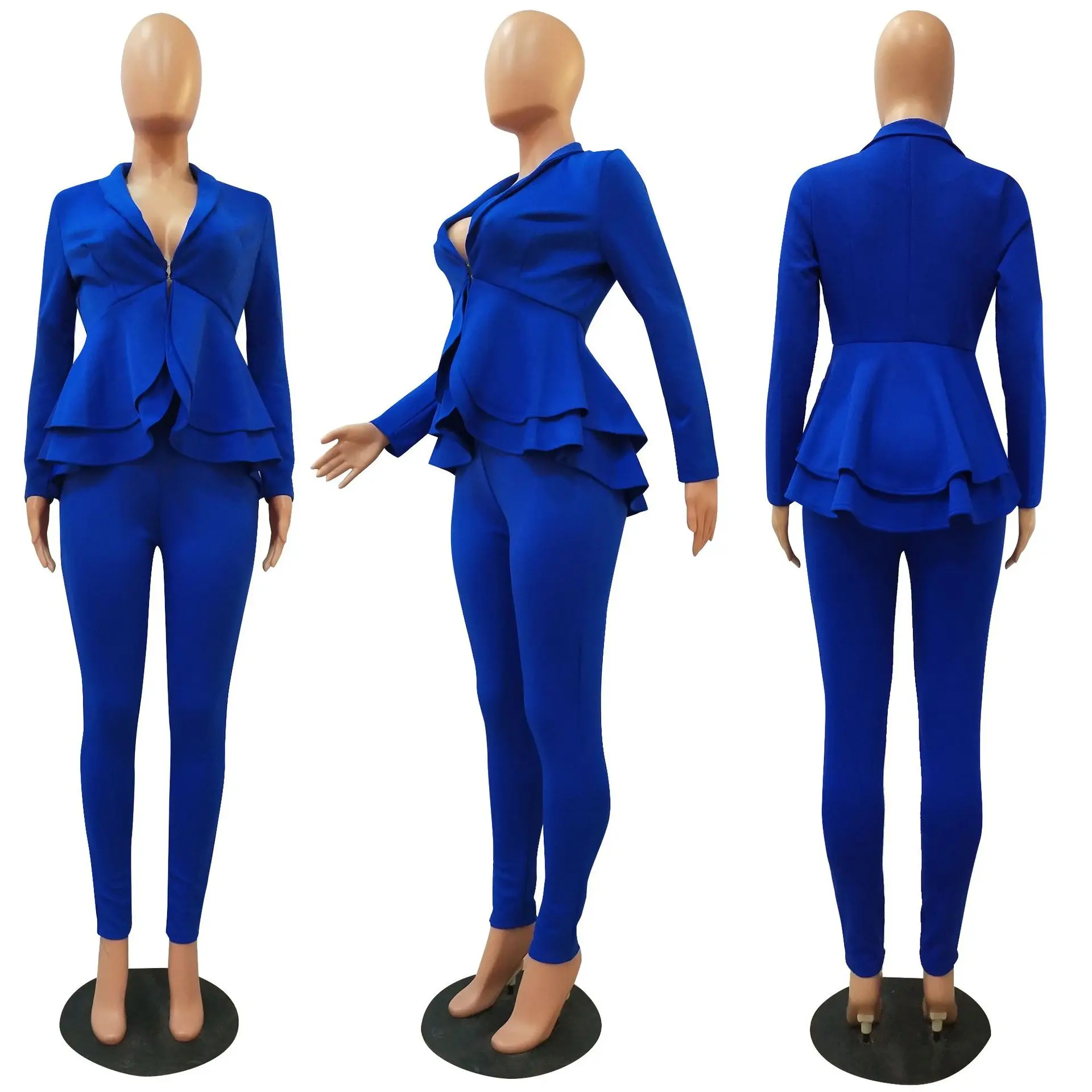 Женский зимний спортивный костюм GL, блейзер с длинным рукавом и оборками, брюки-карандаш, костюм из двух предметов, Офисная форма, 610