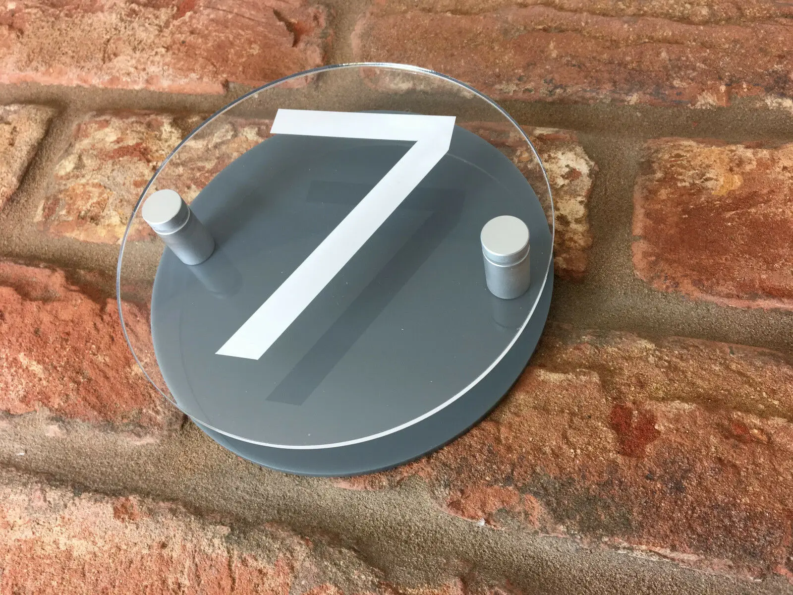 Настройте табличкутабличку с номером дома. Современный серый и прозрачный акриловый круглый