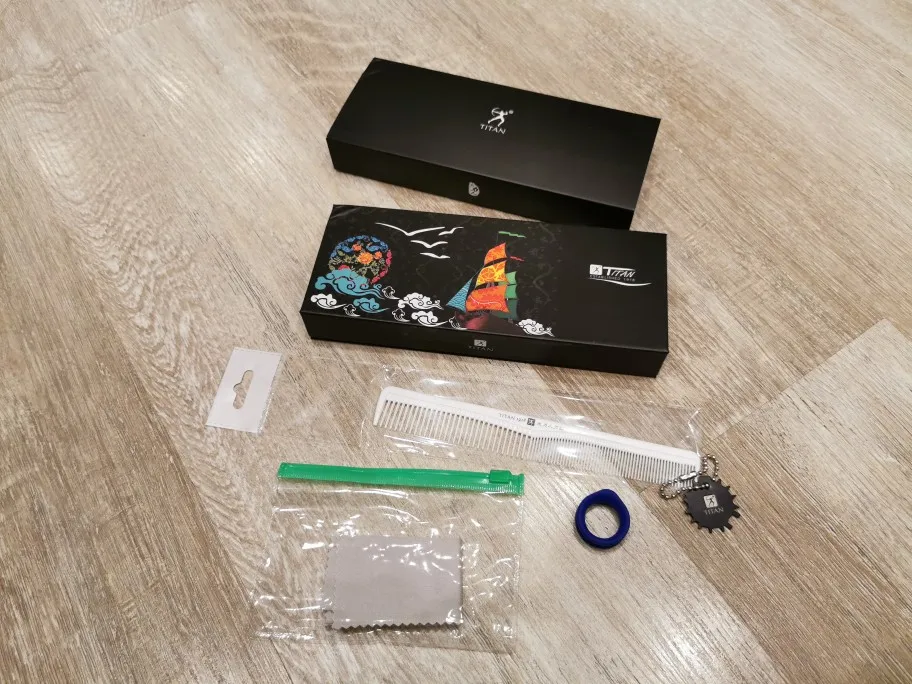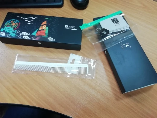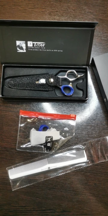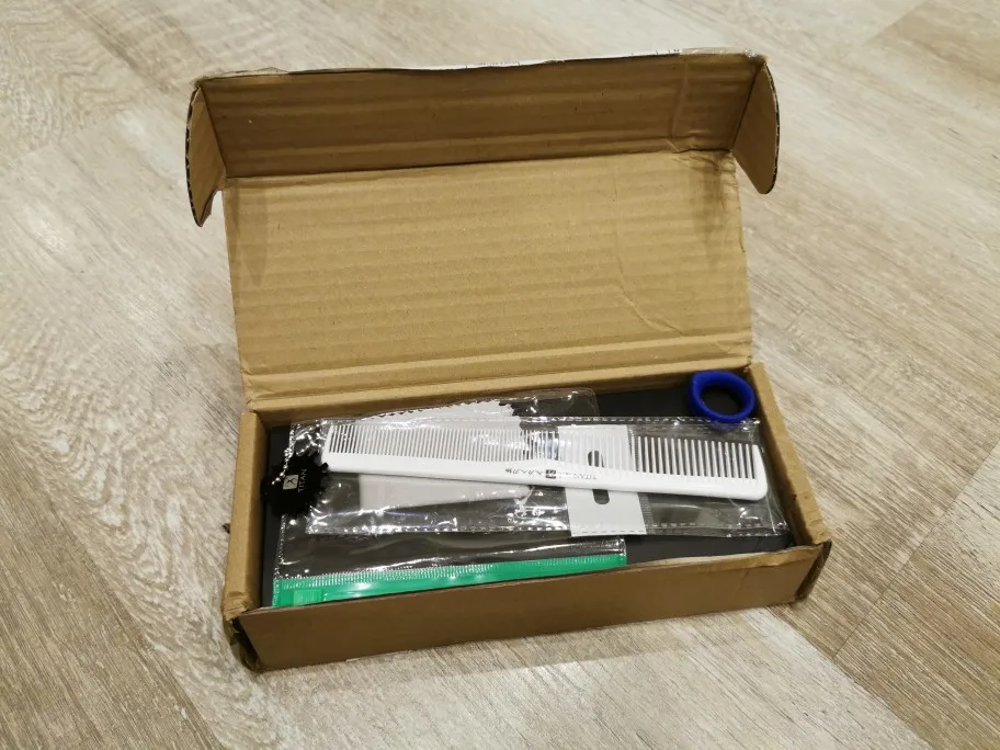 Отличная двойная упаковка, это говорит о том, что Вы уважаете себя и клиента! Очень быстрая отправка и получение. Ножницы были смазанны и обернуты в дополнительную фольгу для лучшего хранения во время доставки. Кроме того, я получил две фирменные расчески. Я очень доволен покупкой, вниманием и отношением от продавца. Я определенно добавляю в список любимых и надежных магазинов. Уважаемый!