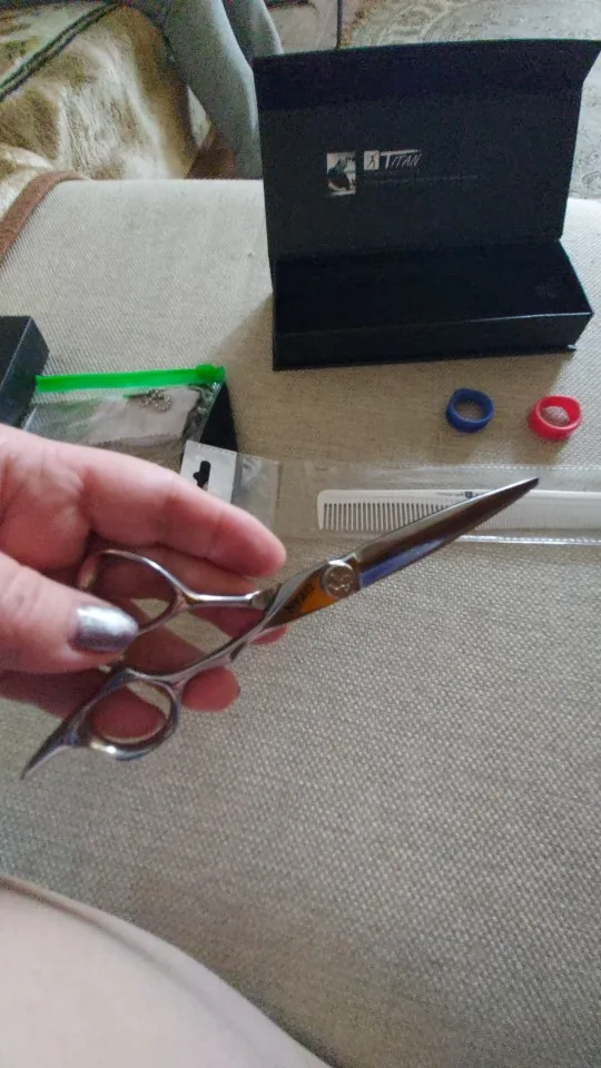 One word "amazing", thise are hight quality scissors, I love them, the comfortable precise cut smoothly each time, the tension screw easy to operation, come with complete pack to take care of them also add hight quality comb really usfull, great packing & special delivery, thank you so much.