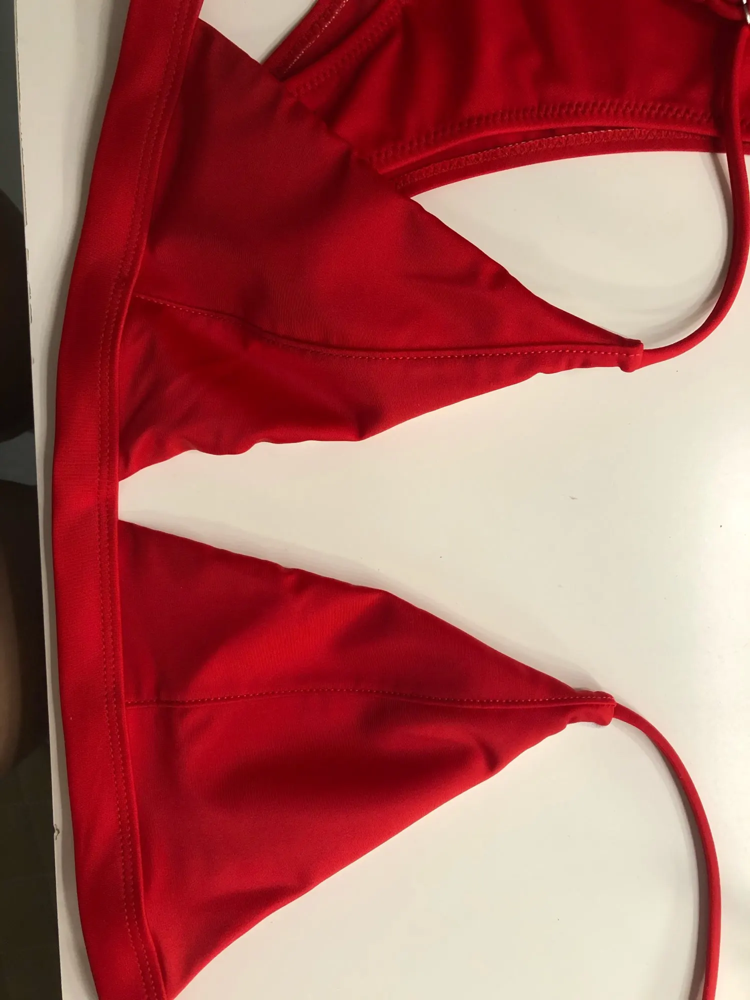 Модный сексуальный комплект бикини для девочек, Женский однотонный купальный костюм с высоким вырезом, летняя пляжная одежда, женский красный купальник с низкой талией # E