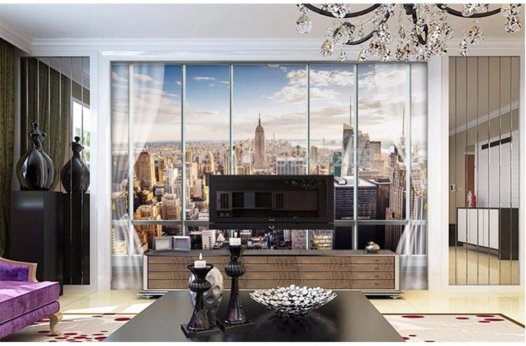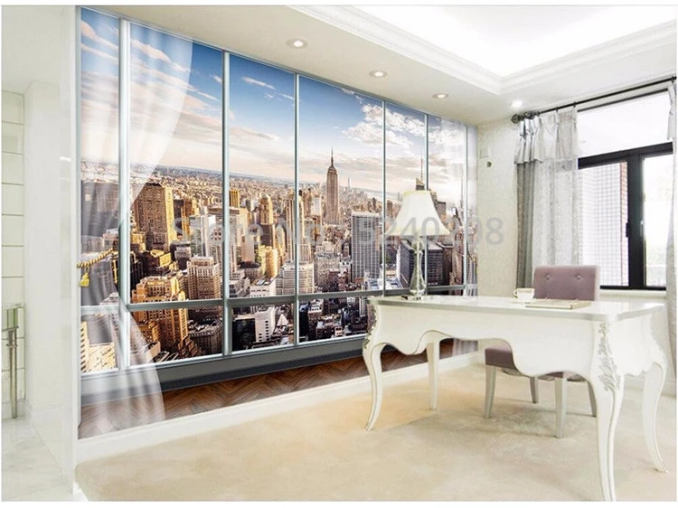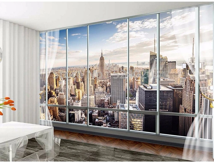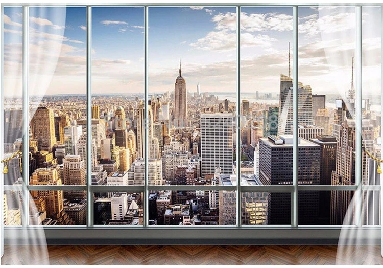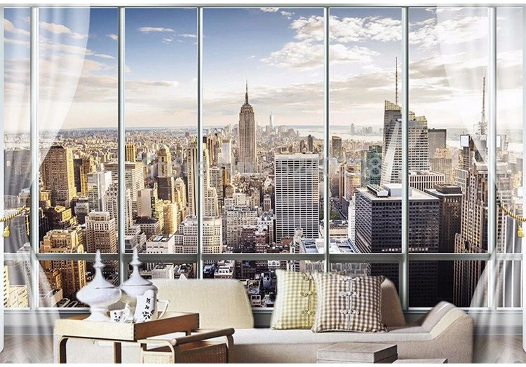 Фотообои под заказ 3D стерео за окном пейзаж Нью-Йорка Настенная ро...