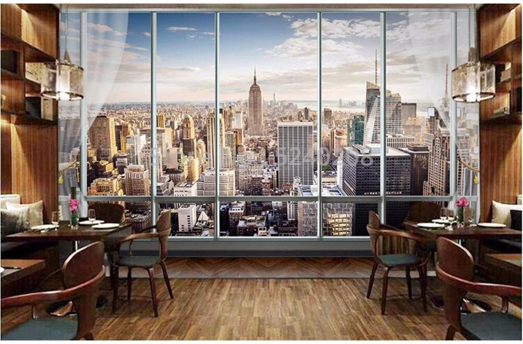Фотообои 3D с изображением улицы окна и города, Настенные обои с изображением на тему ресторана, отеля, офиса, самоклеящиеся наклейки на стену, фреска
