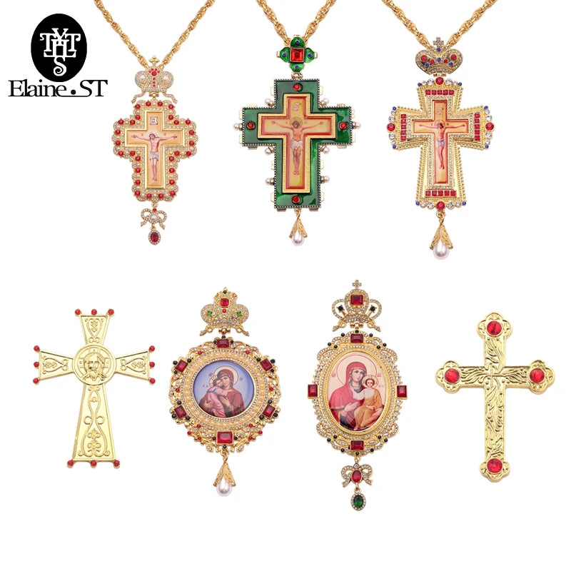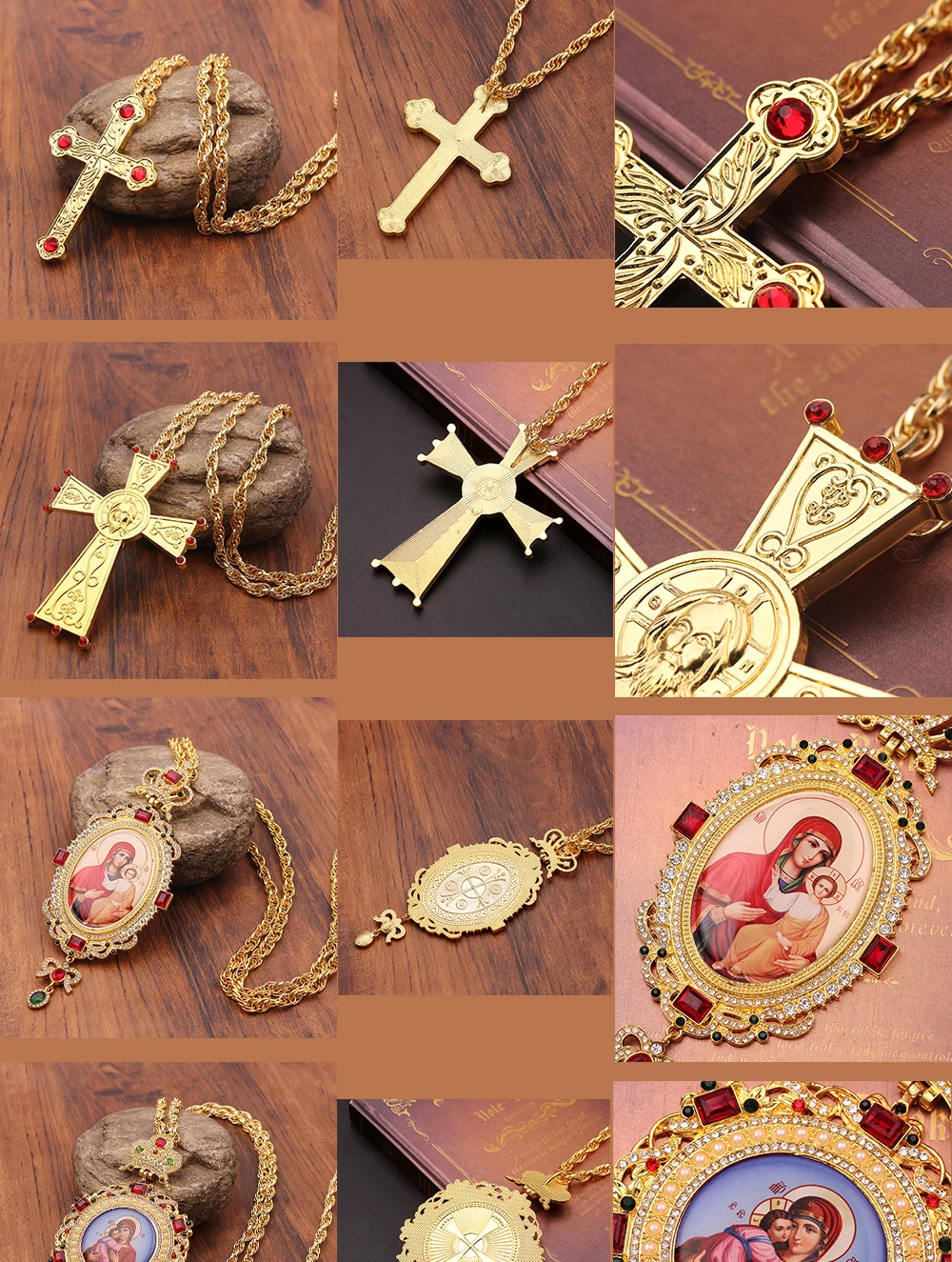 8 стилей, ожерелье из католического Креста, золотой цвет, металлические поделки, иконы, кристаллы циркона, православный крест, подарки, подвеска