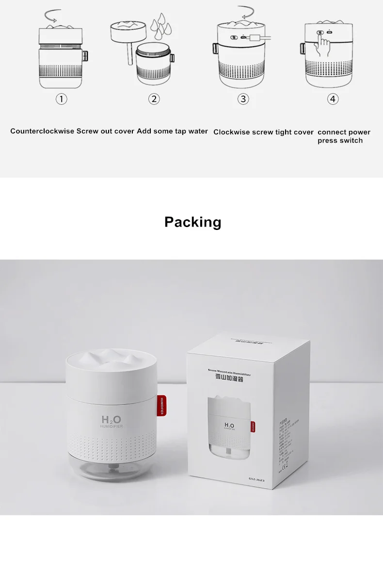 Увлажнитель воздуха White Snow Mountain, 500 мл, ультразвуковой, USB
