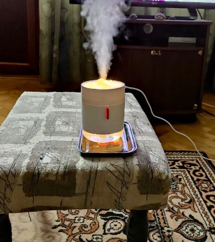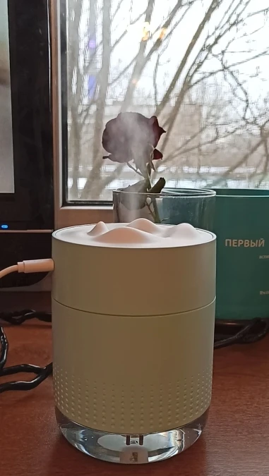 Отличный увлажнитель воздуха! Очень эстетично смотрится в интерьере комнаты. Работает не только от 220v, но и от ноутбука через usb-кабель. Через 20-30 минут в комнате 15-18 квадратов чувствуется свежесть, благодаря увлажнённому воздуху. Теперь бы прикупить водорастворимые эфирные масла, будет вообще кайф. Надеюсь, сей гаджет прослужит долго.