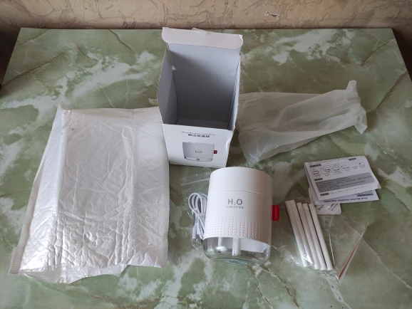 Пришел заказ быстро,коробка слегка помята,внутри доп.фильтры. Работает почти неделю-все отлично.Есть два режима: постоянно даёт пар и прерывисто.На прерывистом режиме хватает больше,чем на всю ночь.Работает очень тихо, немного светит красным в темноте,показывая,что подключен. При заканчивании воды включает на несколько секунд белую подсветку и отключается. Безопасно) Из минусов-нет шкалы заполнения воды МАХ. Наливаю интуитивно до двух полос.