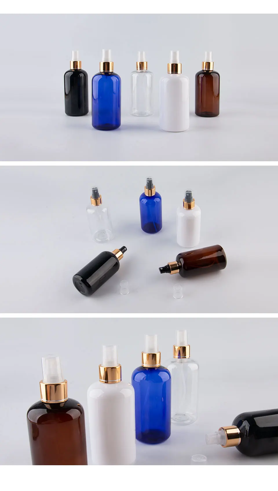 Флакон из золотистого алюминия с распылителем, 250 мл, для духов, жидкости, медицинского спрея для ухода за кожей, пустой пластиковый косметический контейнер, ПЭТ