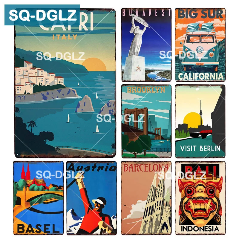 Металлическая вывеска SQ-DGLZ Прибрежный город, жестяная вывеска, винтажный декор, доска для поделок, домашний декор, картина, бляшки, художественный постер