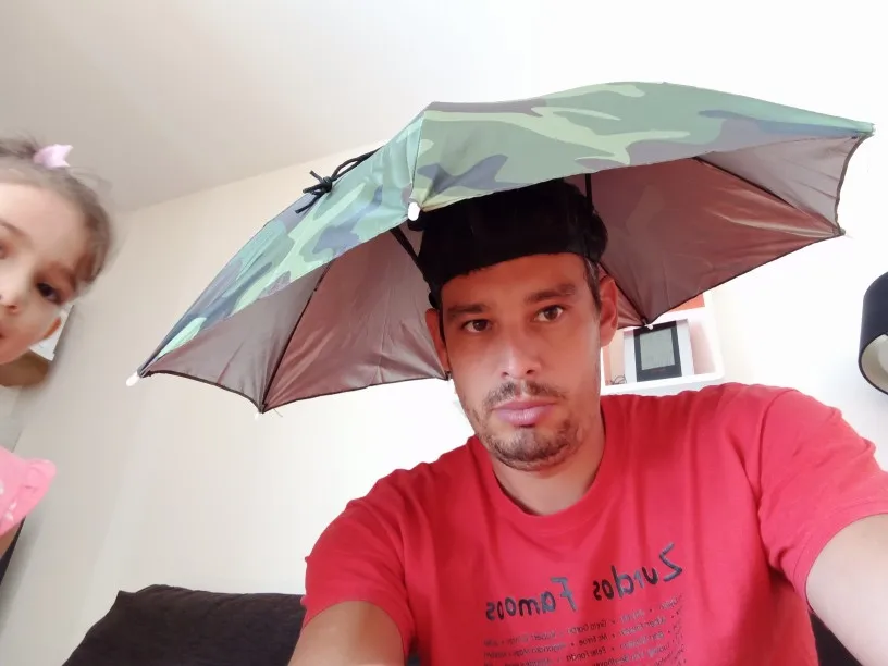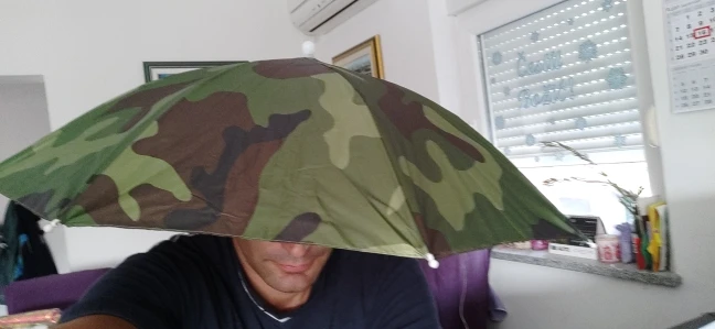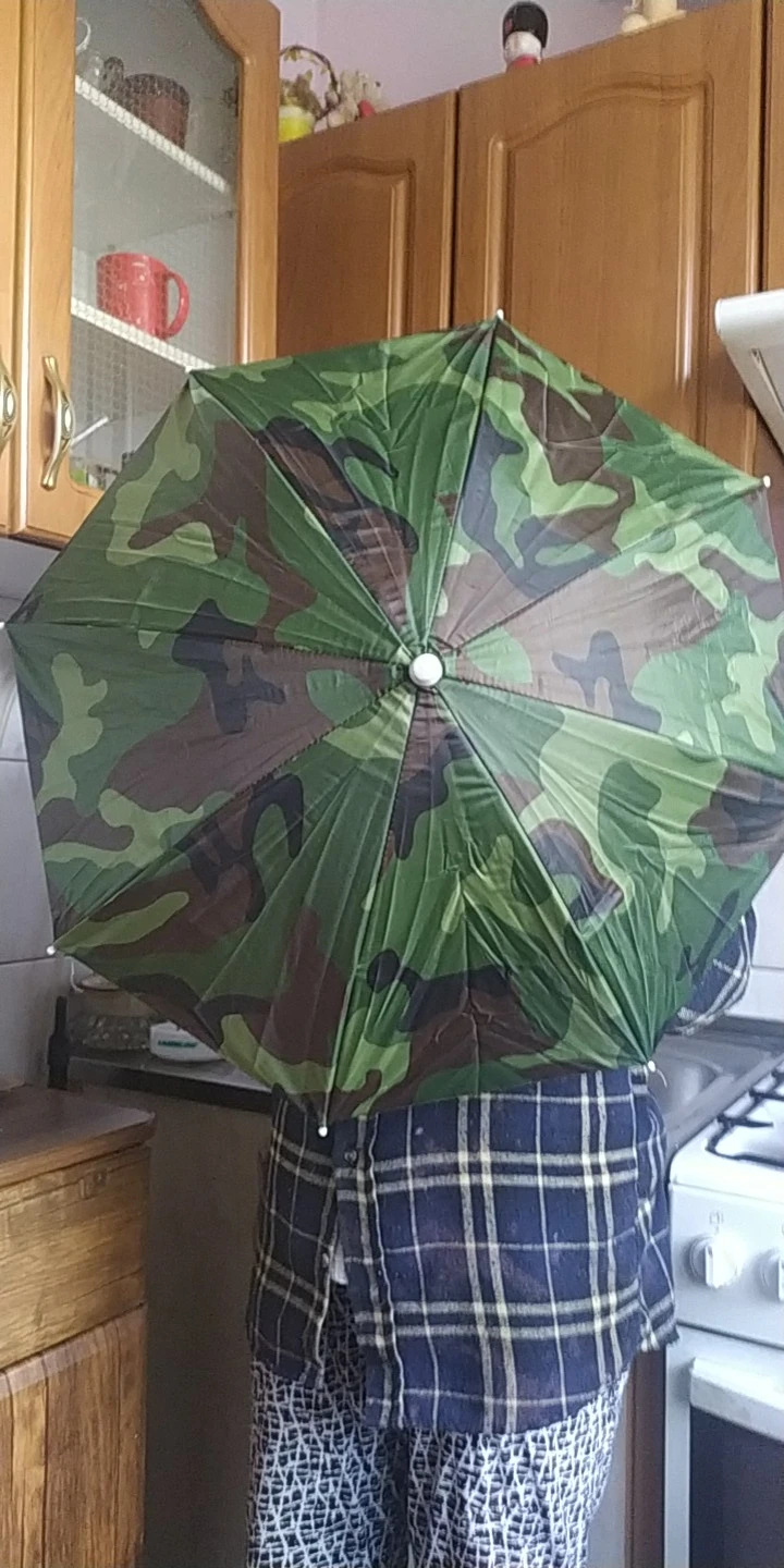 Очень полезный гаджет для Каждого рыбака. Защищает как от солнечных лучей, так и от солнца до дождя. Не krêpuje одновременно ручной, что позволяет untethered handhold удочки и приманки в сборе.