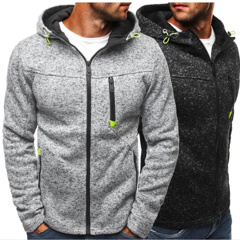 Куртка мужская флисовая на молнии, Спортивный Повседневный Модный свитшот, жаккардовые толстовки с капюшоном, Осень-зима