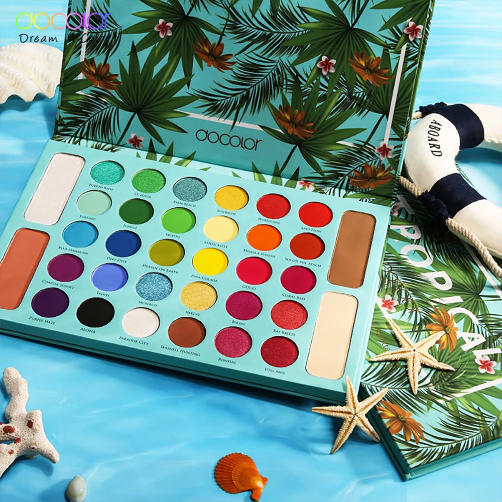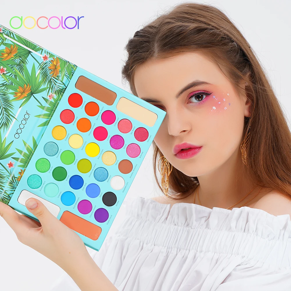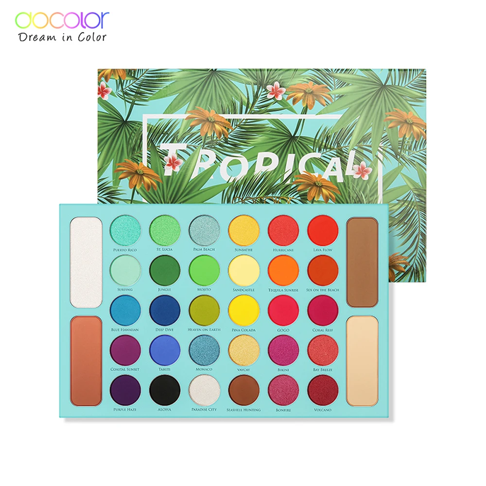 Docolor 34 Цвета Палитра теней для век тропические тени поддон Блестящий хайлайтер мерцающий макияж Пигмент матовые тени для век Палитра