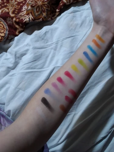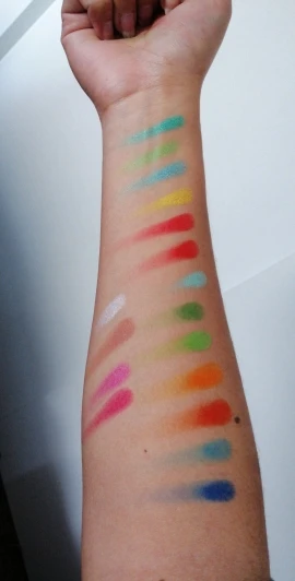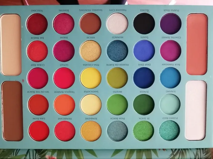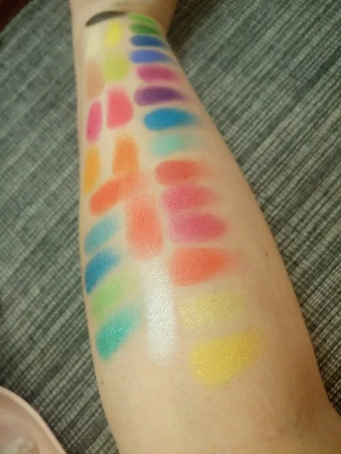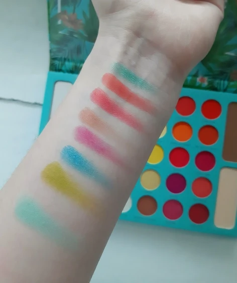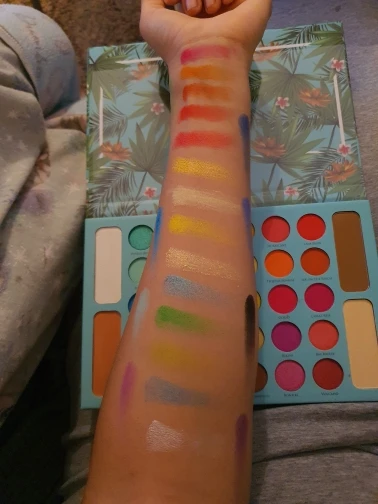 Очень пигментированная палитра и очень разнообразные тона. Она была удержена на таможне и около 3 месяцев, чтобы добраться до моего дома. Цвета очень пигментированы, но все еще немного сильно пахнут, как пластик, но по цене это полностью стоит того, чтобы цвета были красивыми. Еще не Премиум в макияже, но цвета с застежкой длились довольно долго.