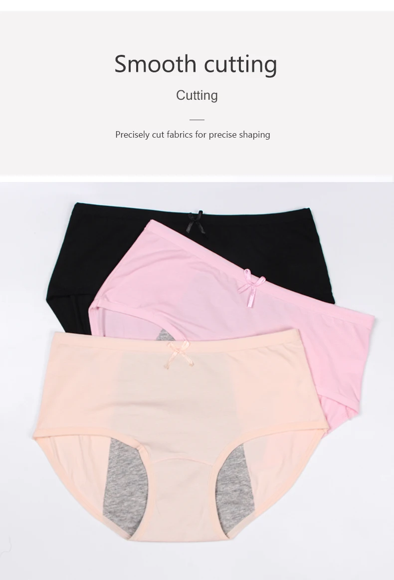Однотонные хлопковые противопротекающие менструальные трусики, дышащие физиологические штаны, женское нижнее белье, непромокаемые трусы размера плюс