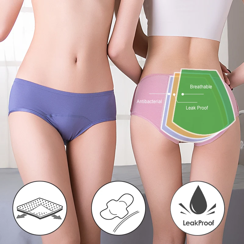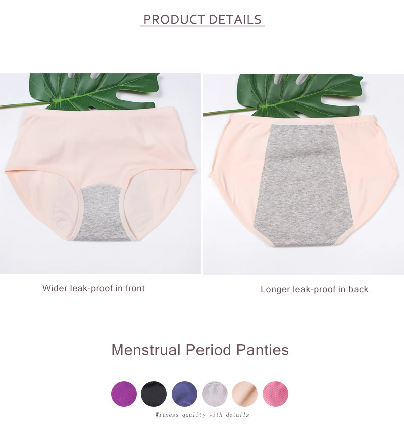 Основная характеристика менструальных трусов:1. Высокое качество 3-х слойные, хорошо впитывают воду и герметичная ткань; 2. Очень мягкие и дышащие, заботятся о домашнем отдыхе весь день; 3. Удлинить и расширить ткань для более эффективной защиты