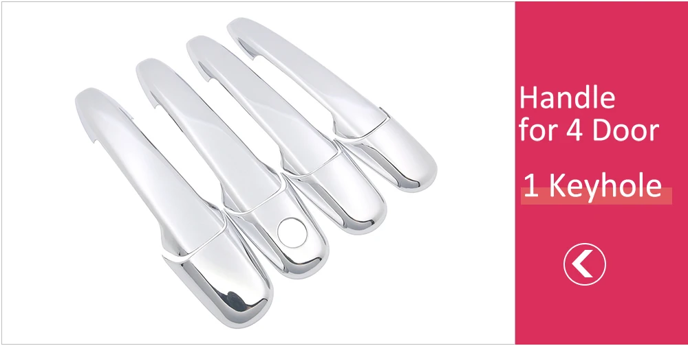 Выделите свой автомобиль из толпы, используя эти 4 высококачественные стильные хромированные покрытия для дверных ручек! В высокого качества пластиковый придает этим включает в себя глубокий & глянцевый хром блеск! Они специально разработаны для вышеперечисленных моделей и отлично сидят! Они оснащены высокопрочной клейкой лентой 3 м сзади, просто снимите ленту с подложки и нанесите! Не требуется никаких инструментов! Это действительно придайте вашему автомобилю крутой новый вид!