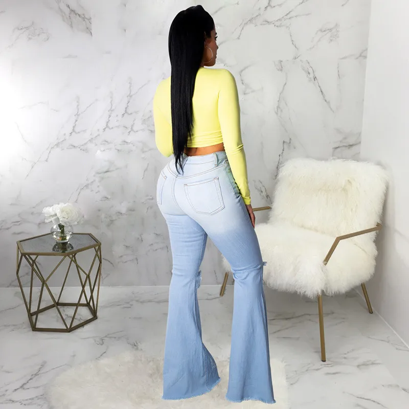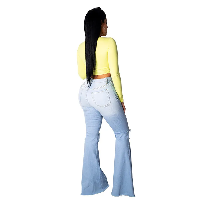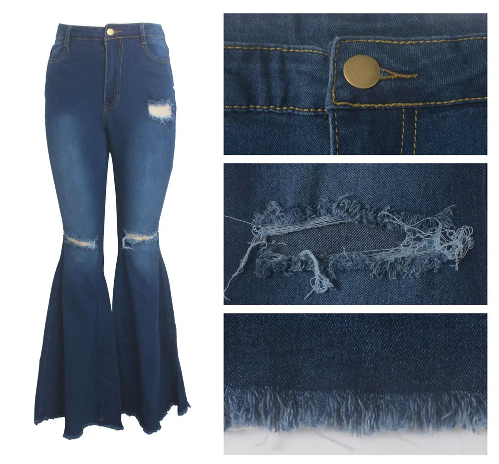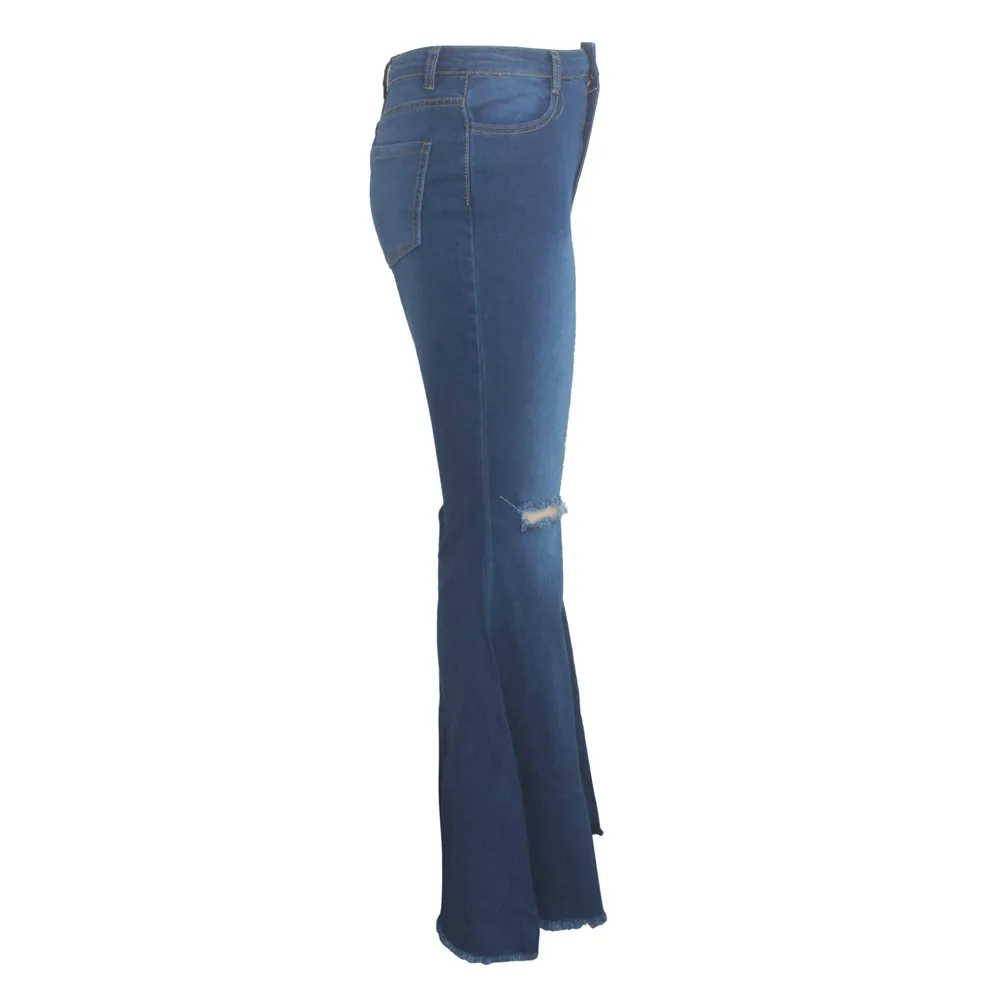 Женские рваные джинсы Tsuretobe, винтажные расклешенные джинсы с высокой талией, повседневные расклешенные брюки с разрезами