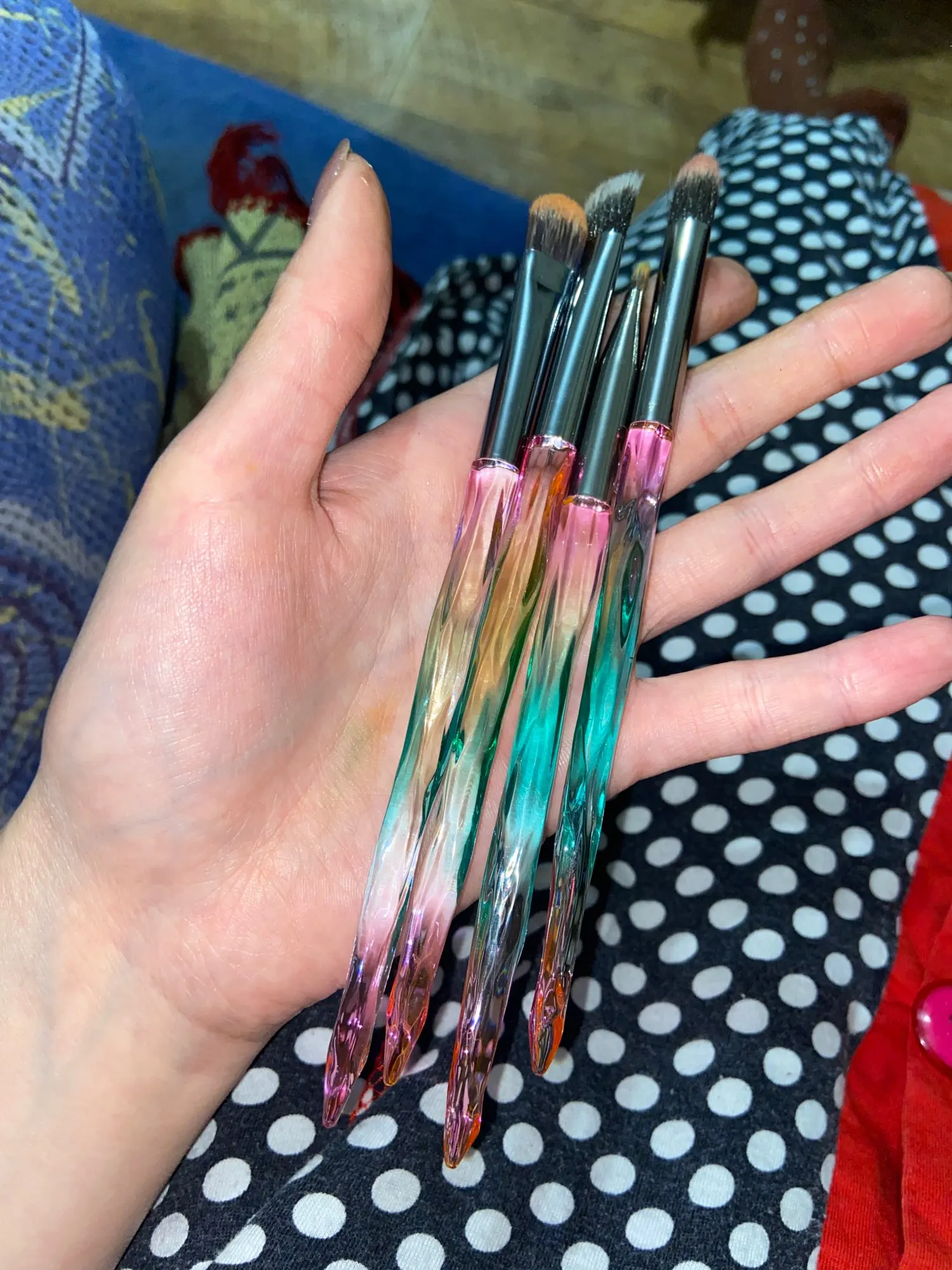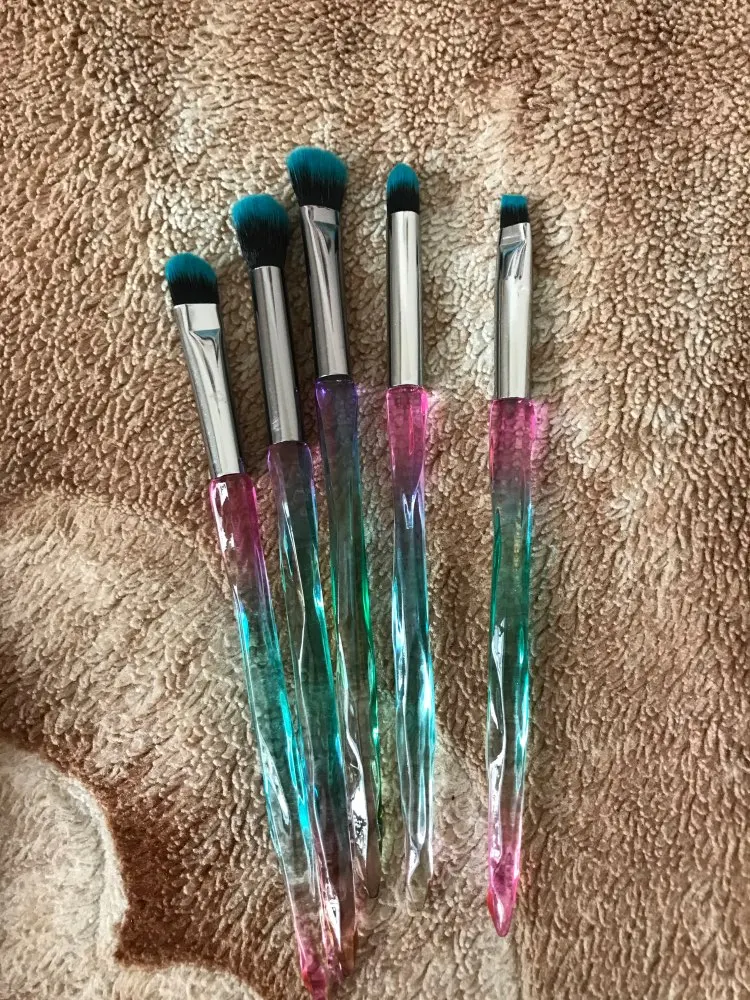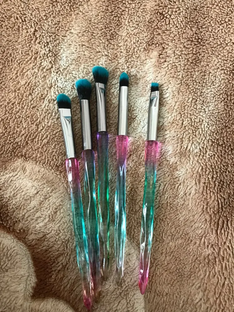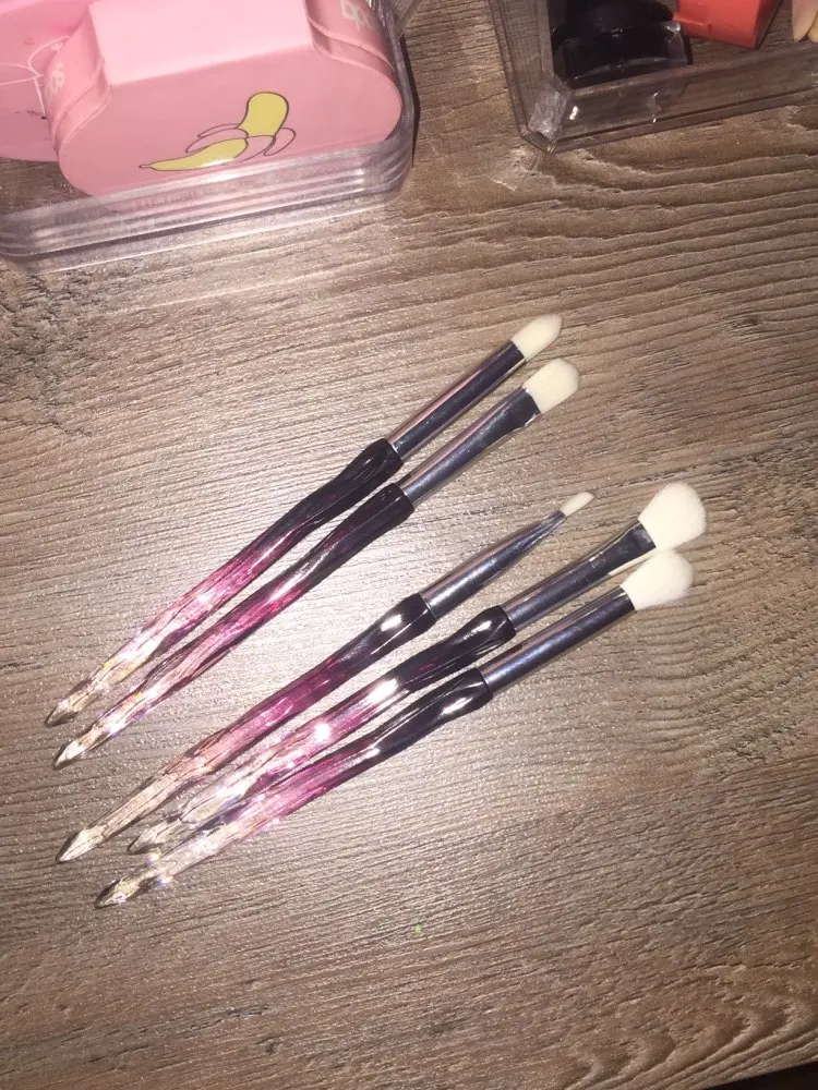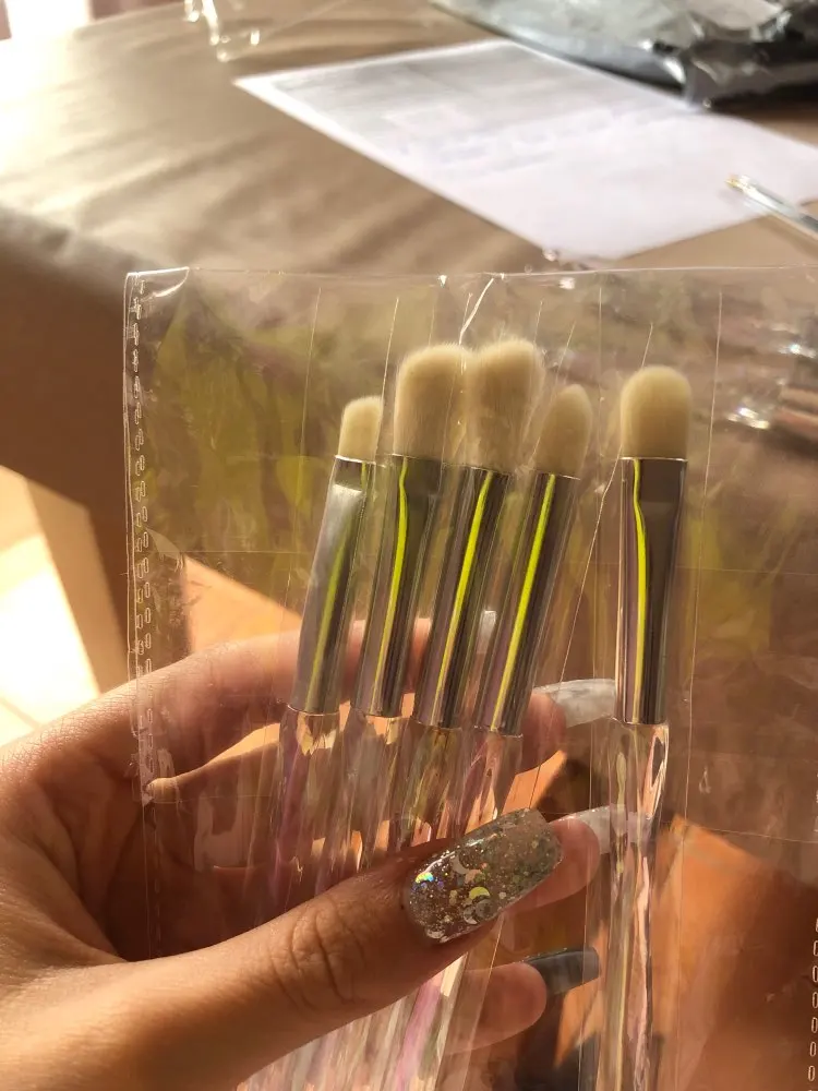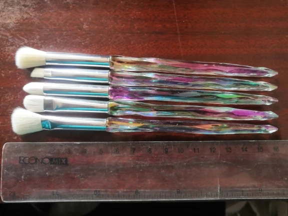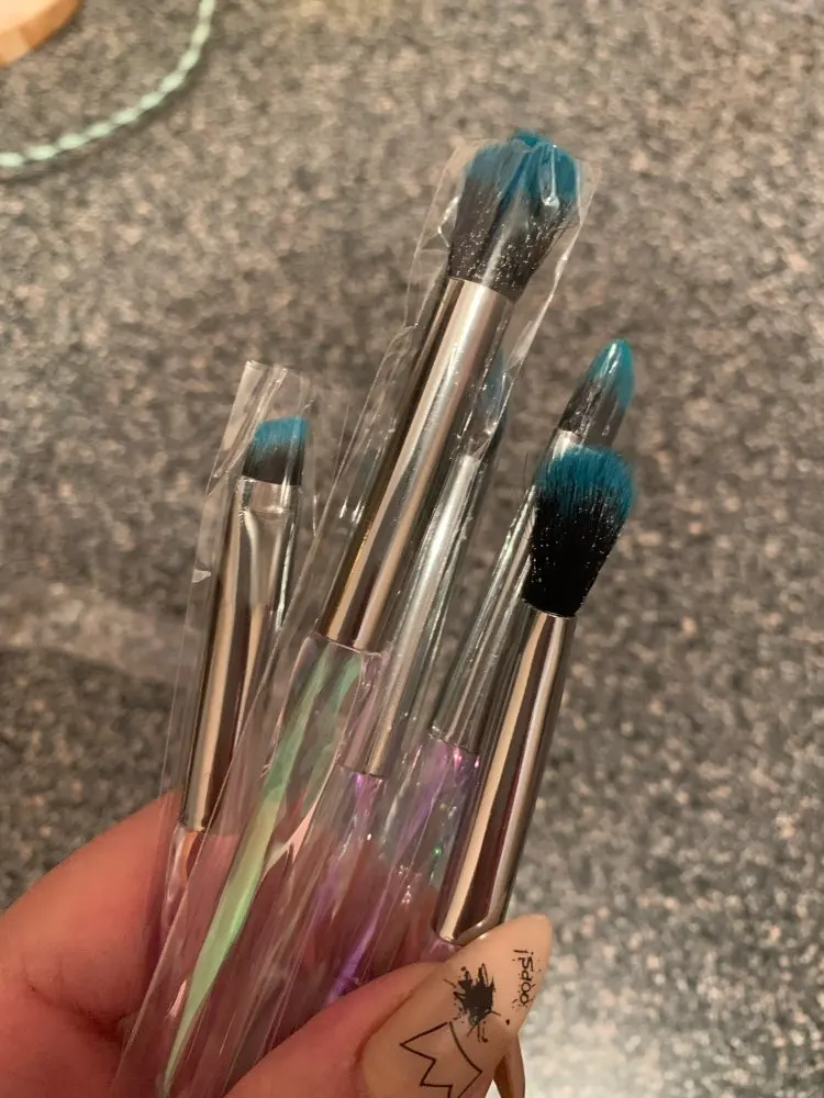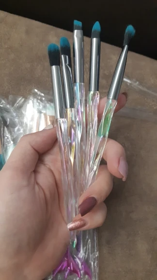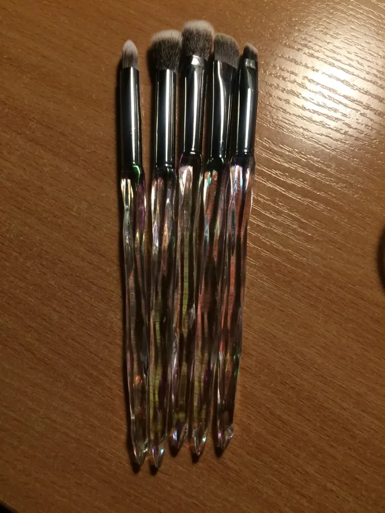 Посылка шла чуть больше месяца. Кисточки ооочень красивые. Ворс блестящий, мягкий, но всё же кисти от Maange(вроде так) мне понравились больше. Приятнее всего удивила скошенная кисть. (У меня есть 3 набора с али разных ценовых сегментов, но кисть из этого набора самая лучшая.) После использования и помывки дополню отзыв.