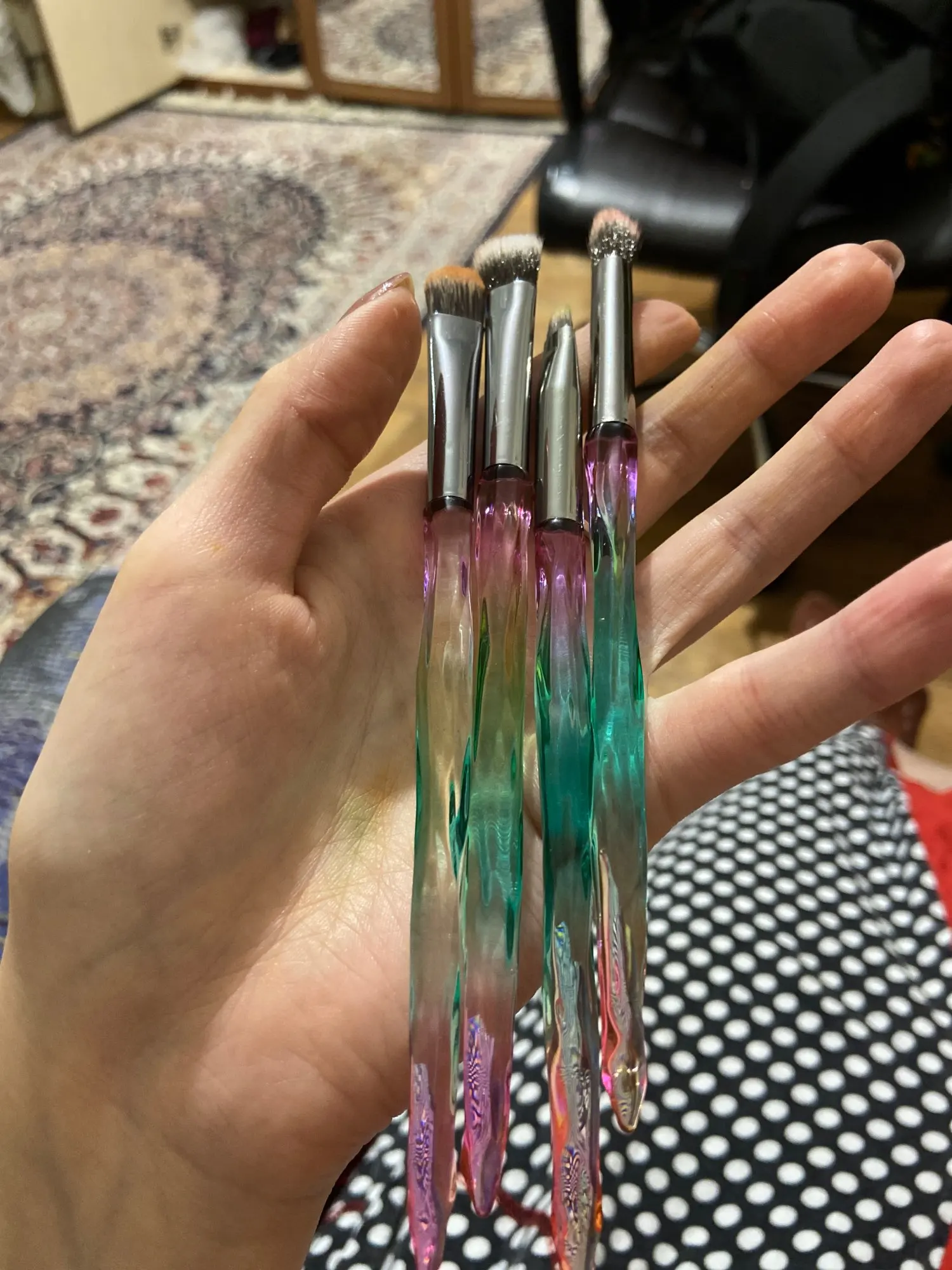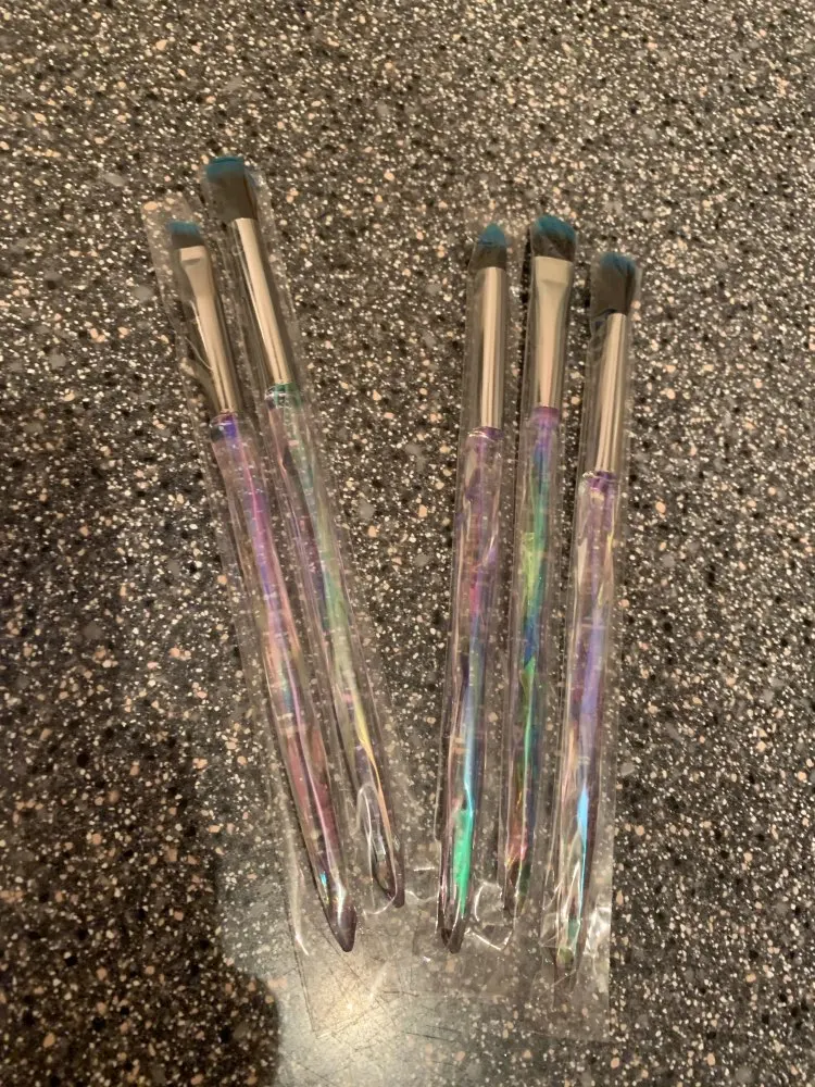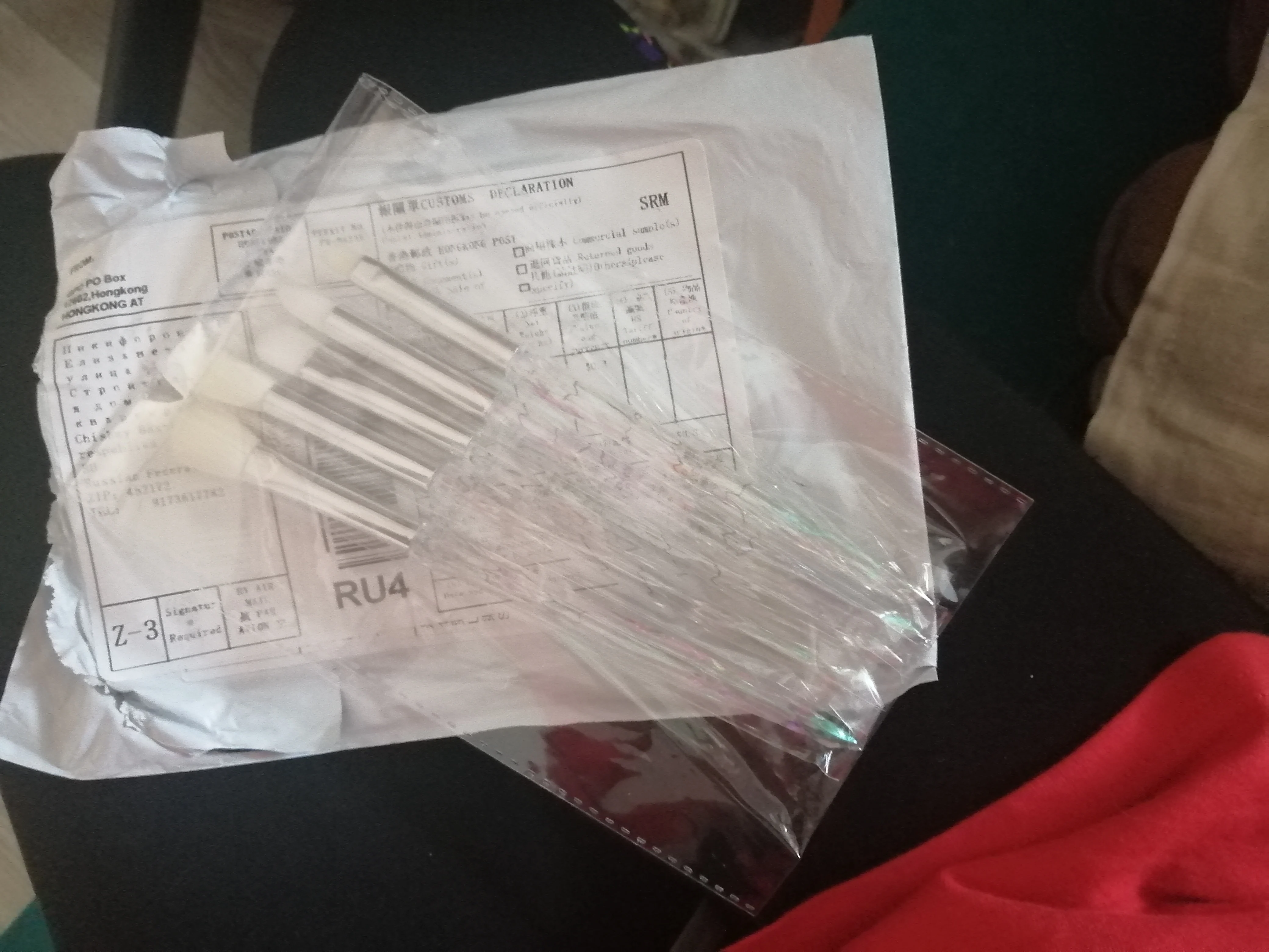 Кисточки пришли буквально за 2 недели в Украину. Хорошо упакованы, для каждой кисточки есть индивидуальная упаковка. Ручка кисточек очень удобная и невероятно красивая, на одной кисточке есть небольшой пузырик воздуха в самой ручке, но это не бросается в глаза и не мешает ее использованию. Очень довольна кисточками, спасибо!)