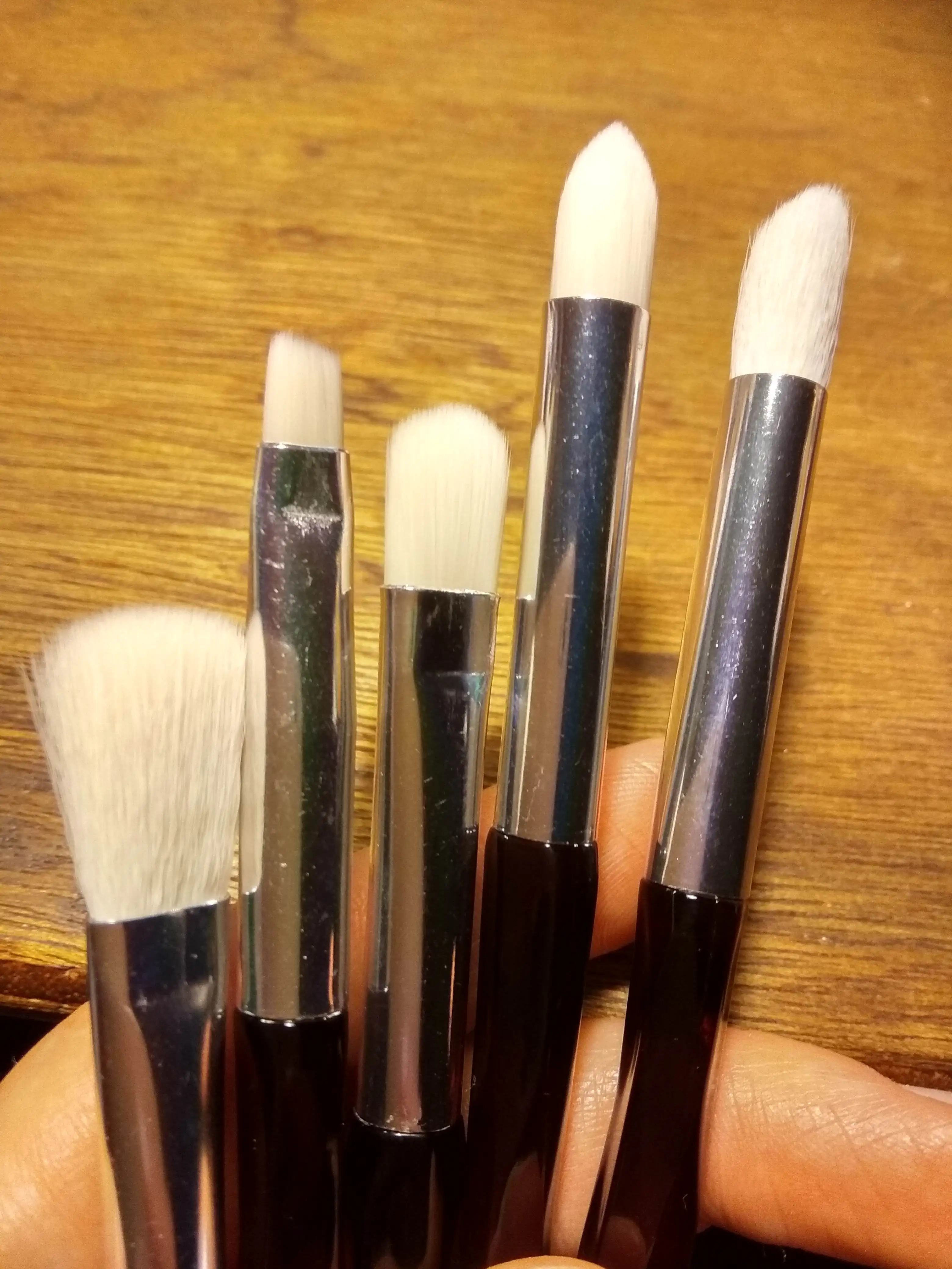 Кисти симпатичные, достаточно мягкие, но не слишком. «Бочонок» кисть неудачная в наборе.