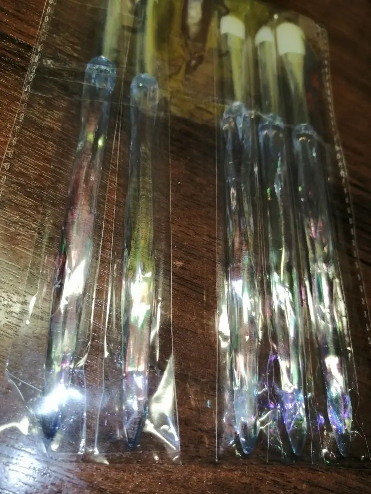 Кисти очень лёгкие, пластик неприятный, шершавый. Рядом положила такие же кисти от другого продавца– даже цвет отличается. Там пластик отличный