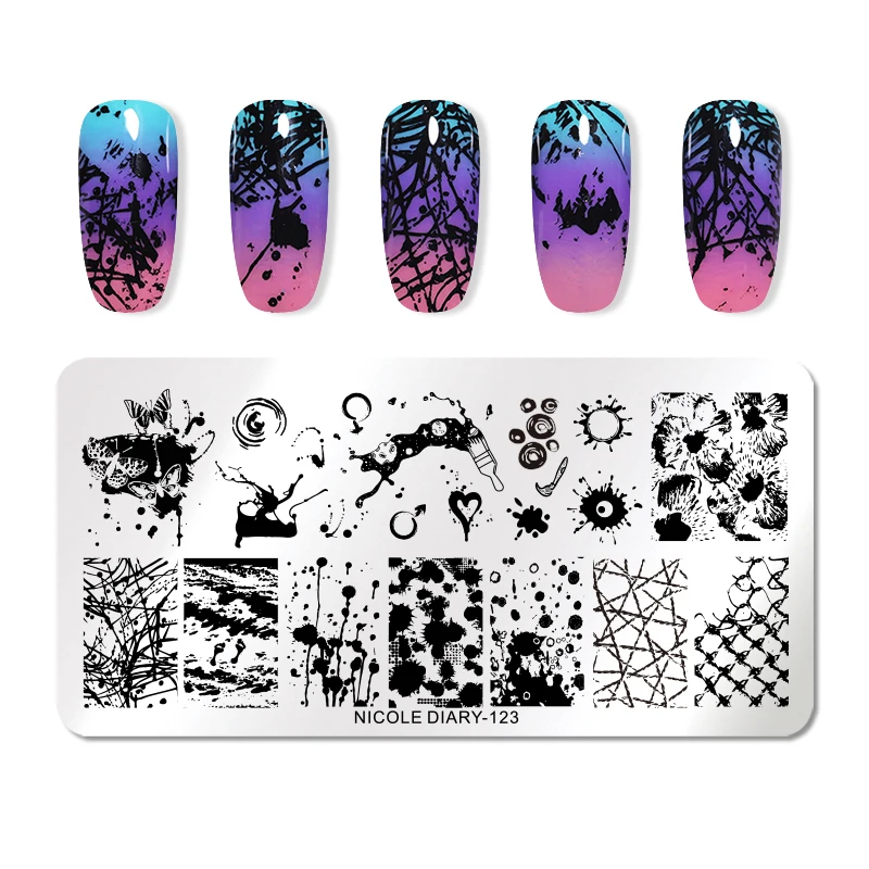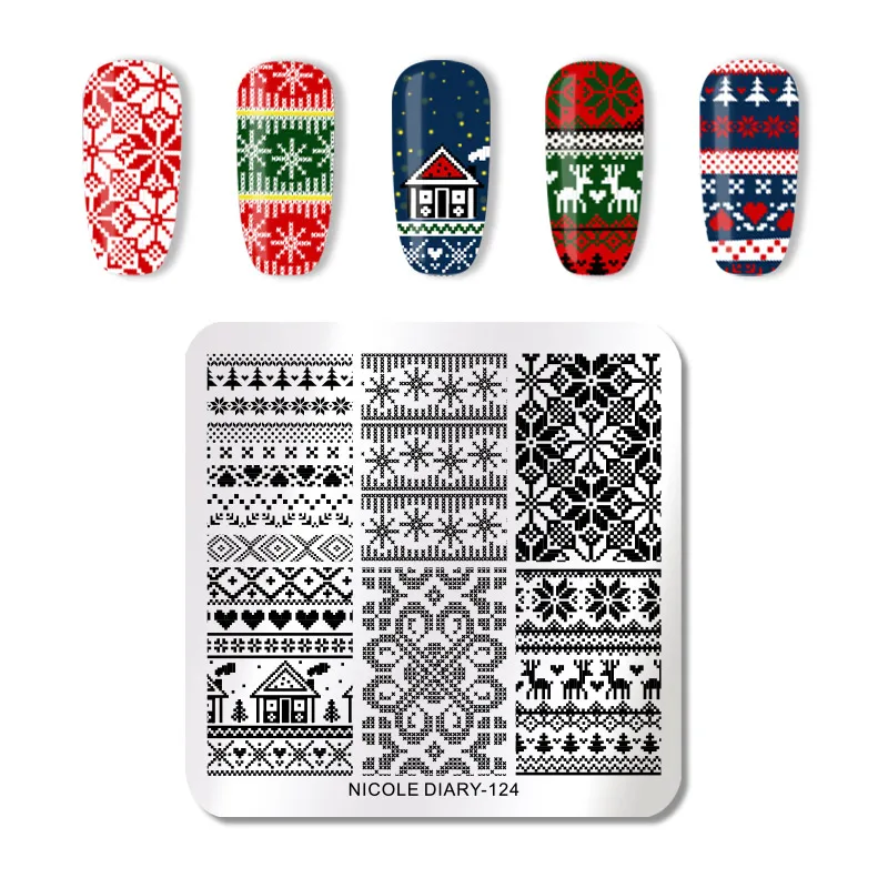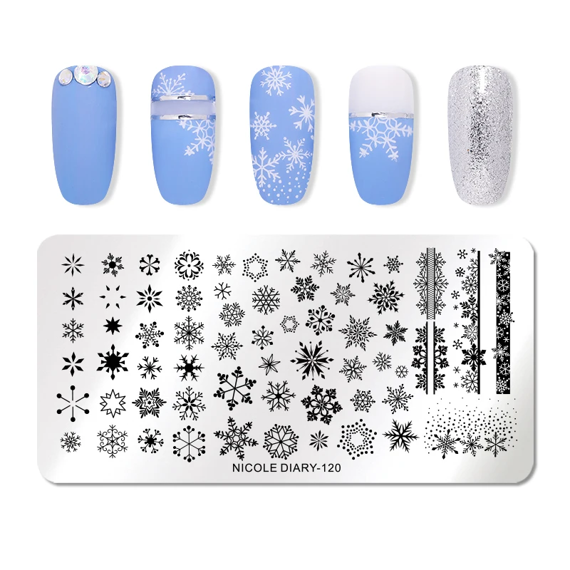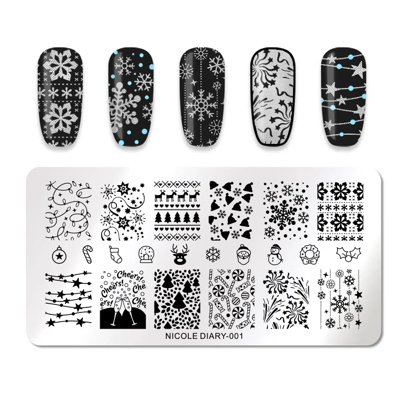 Пластина для стемпинга NICOLE DIARY, Рождественская пластина для стемпинга ногтей с изображением листьев, розовых перьев, трафарет для ногтей