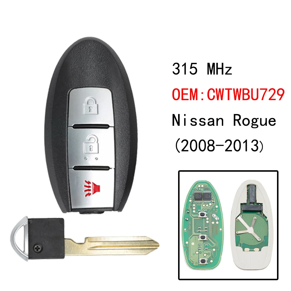 Сменный умный БЕСКЛЮЧЕВОЙ дистанционный ключ с 3 кнопками, 315 МГц, брелок для Nissan Pathfinder Rogue Versa 2008-2013 CWTWBU729, чип для автомобильного ключа