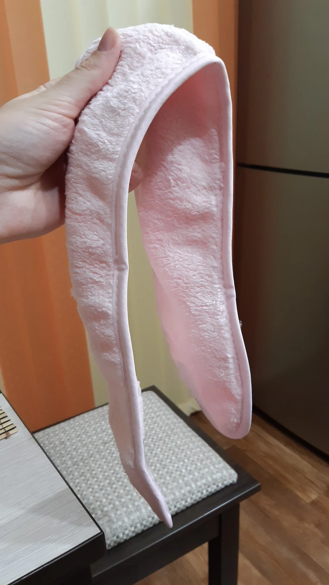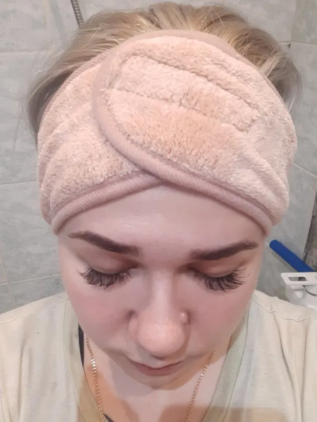 Очень удобная повязка. У меня короткое каре, под неё даже волосы заправляю когда не хочу голову мочить при принятии душа. А вообще брала для масок, чтоб волосы не пачкать, теперь и умываюсь с ней, не знаю, как раньше жила без неё)) цвет приятный, текстура тоже, держит хорошо. Можно регулировать по объёму головы, в общем 10 из 10