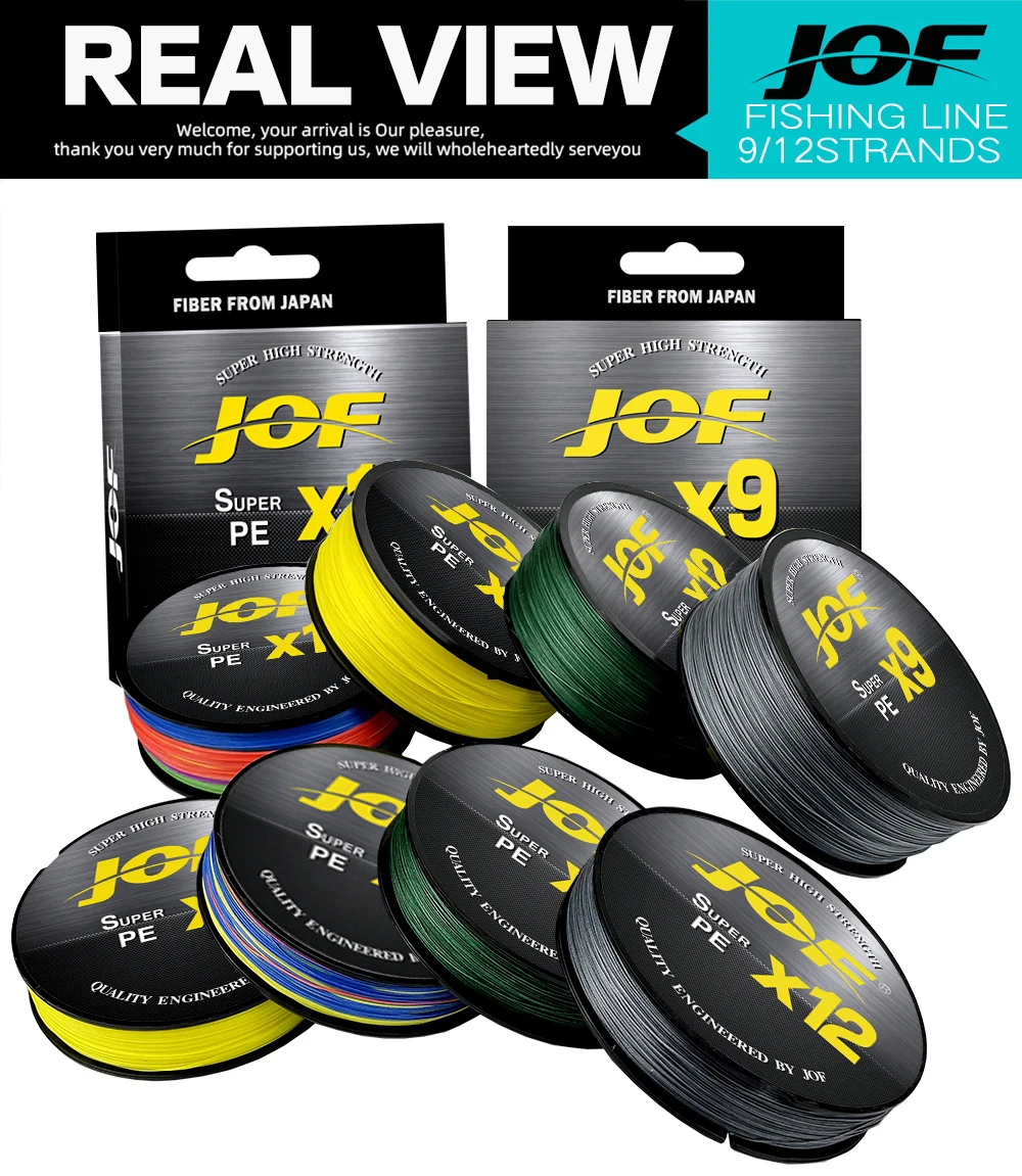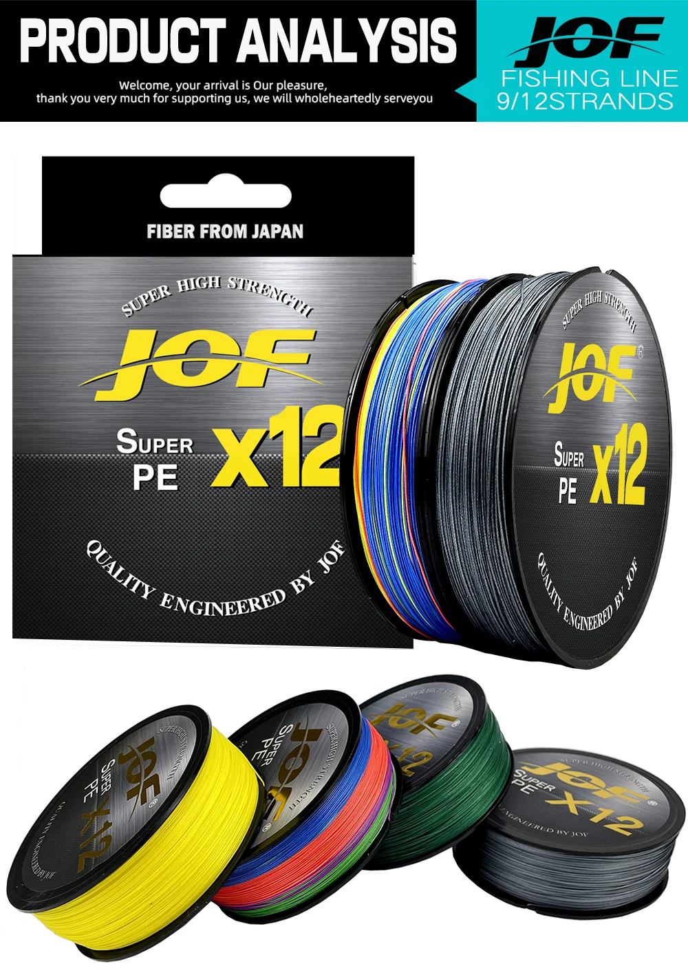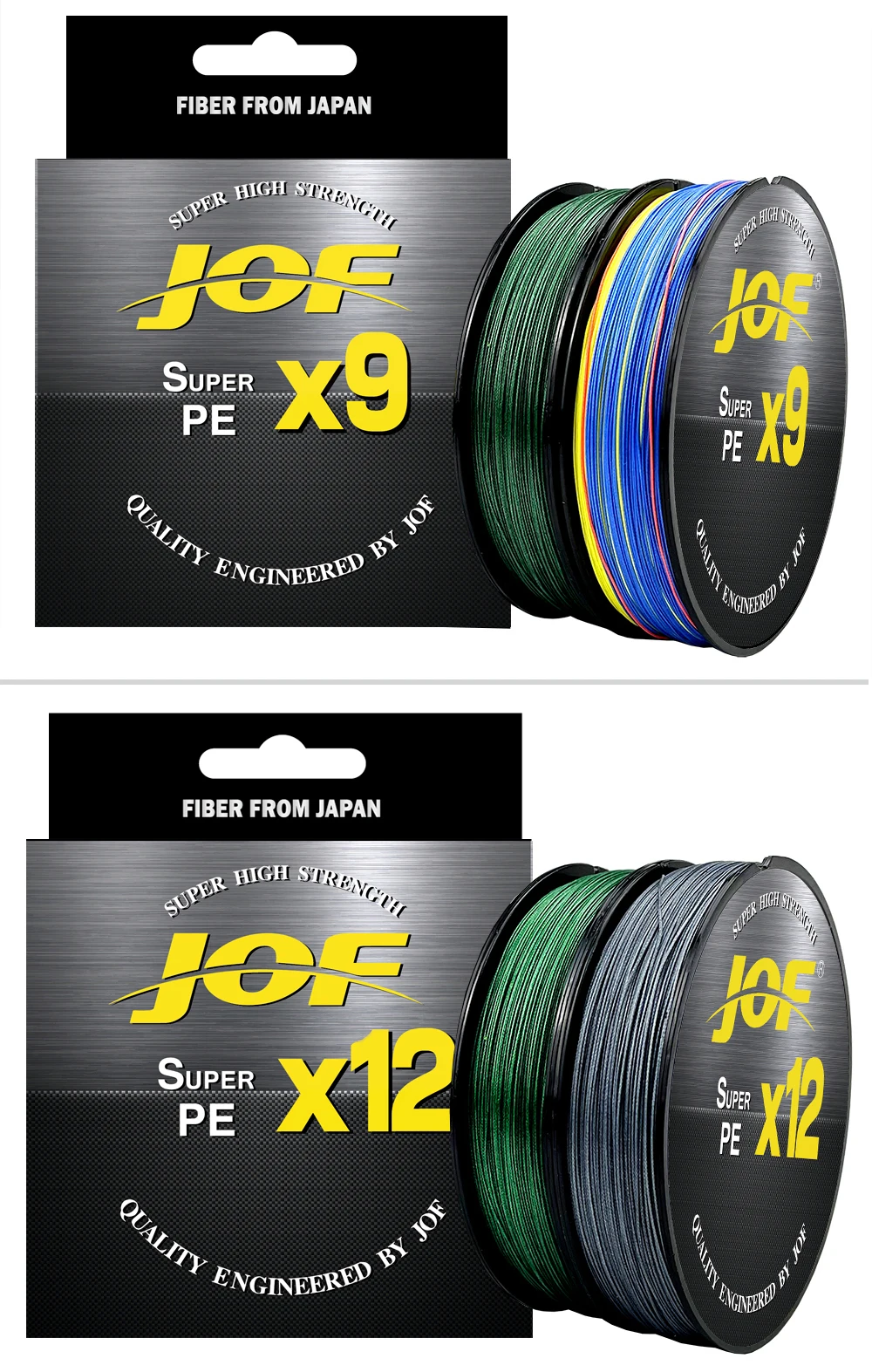 Плетеная рыболовная леска JOF X9X12, 500 м, 300 прядей, многоцветная полиэтиленовая леска для соленой воды 20, 24, 35, 40, 50, 65, 80 фунтов