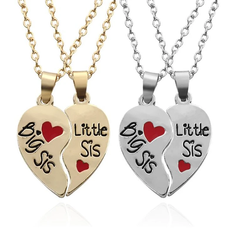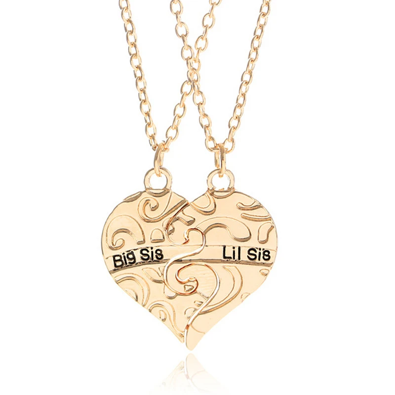 Модное модное ожерелье с кулоном в виде разбитого сердца, ожерелье с кулоном для большой сестры, подарок для женщин и девочек