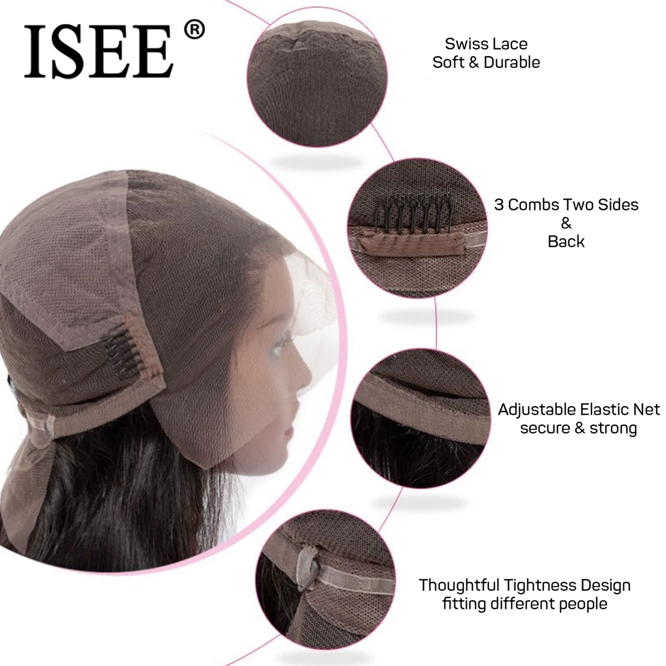 Прямые парики из натуральных волос на шнурках для женщин, предварительно выщипанные парики из натуральных волос 150%, парики из натуральных волос ISEE, малазийские прямые парики на шнурках