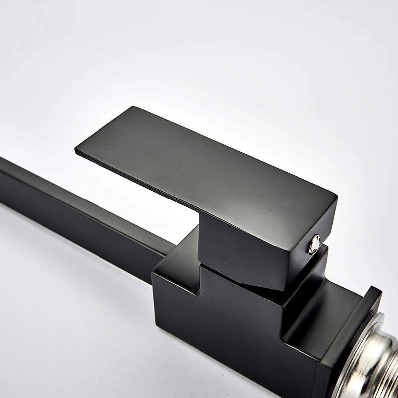 Смеситель Quyanre латунный, черный, квадратный, однорычажный, с поворотом на 360 градусов
