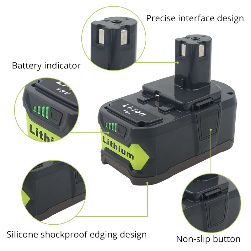 Сменный литий-ионный аккумулятор Ryobi ONE + 18 в 6000 мАч RB18L50 RB18L40 RB18L25 P108 P107 P104 P105 P102 P103 с светодиодный лампой Характеристики: Состояние: 100% Новый Сменный аккумулятор (не оригинал)Товар: аккумулятор для RyobiТип батареи: литиеваяНапряжение: 18 вВес: около 720гЕмкость: 6000 мАч/108WhЗарядка в любое время не повлияет на аккумулятор.Аккумулятор большой емкости Ryobi 18V обеспечивает в четыре раза больше времени работы.В 4 раза дольше длительной зарядки и на 20% легче, чем Ni-Cd батареи.CE UL FCC и RoHS сертифицированы.Оснащен защитой звезды от перезарядки, перегрузки, перегрева и короткого замыкания Замена оригинальных моделей батарей:BPL-1815, BPL-1820G, BPL18151, BPL1820, P102, P103 P104, P105, P106, P107, P108, P109 Совместимые модели:Примечание: Не работайте с "Ryobi P261 18V ONE + 3-Speed 1/2 in. Беспроводной ударный ключ" Для RYOBI ONE + 18 Вольт Аккумуляторная дрель Мощность инструментBID-1801M, BID-180L, BID1821, BIW180, CAD-180L, CAG-180M, CAP-1801M, CCC-1801M, CCC-180L,CCD-1801, CCG-1801M, CCG-180L, CCS-1801/DM, CCS-1801/LM, CCS-1801D, CCS-1801LM, CCW-180L, CDA-18021B, CDA1802, CDA18021B, CDA18022B, CDA1802M, CDC-181M,CDI-1802, CDI-1802M, CDI-1803, CDI-1803M, CID-1802M, CID-1803L, CID-1803M, CID-182L, CID-183L, CFA-180M, CFP-180FM, CFP-180S, CFP-180SM, CHD-1801M, CHI-1802M, CHP-1802M, CHV-180L, CHV-18WDM, CJS-180L, CJS-180LM, CJSP-1801QEOM, CJSP-180QEO, OBL-1801, OCS-1840, OGS-1820, OHT-1850, OLT-1830, OPS-1820, ORS-1801, OWD-1801M, P200, P2000, P2002, P201, P203, P204, P206, P2060, P208B, P210, P2100, P2102, P2105, P211, P220, P221, P230, P234G, P236, P240, P2400, P241, P246, P250, P2500, P2600, P2603, P271, P300, p301, P310, P3200, P3300, P3310, P340, P400, P410, P420, P430, P500, P501, P506, P510, P514, P520, P521, P522, P530, P540, P570, P600, P610, P631K, P650, P700, P701G, P703, P704, P710, p711, P715, P716, P730, P731, P740, P741, P780, P813, P835 Посылка:18V 6000mAH литий-ионная аккумуляторная батарея для RyobiРуководство пользователя