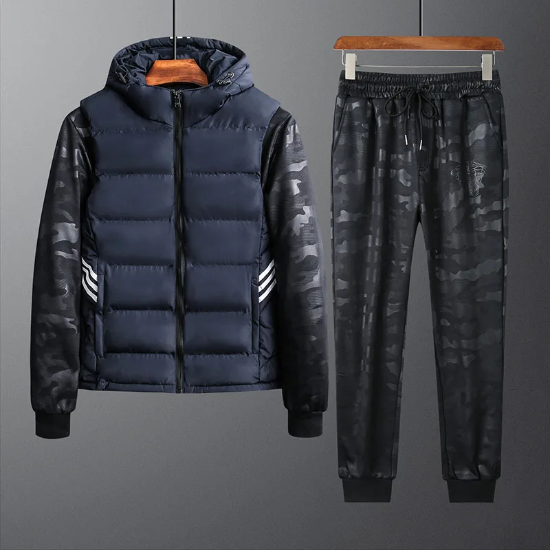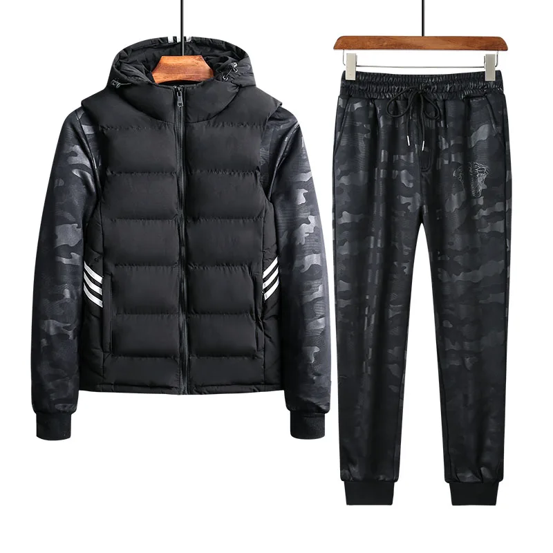 Мужской спортивный костюм из трех предметов, набор для бегунов, повседневная куртка с длинным рукавом, теплый жилет и брюки, Осень-зима 2019