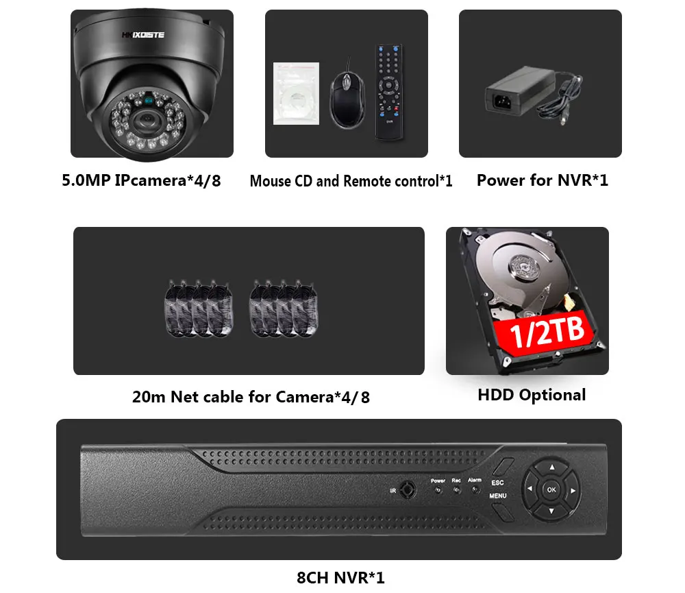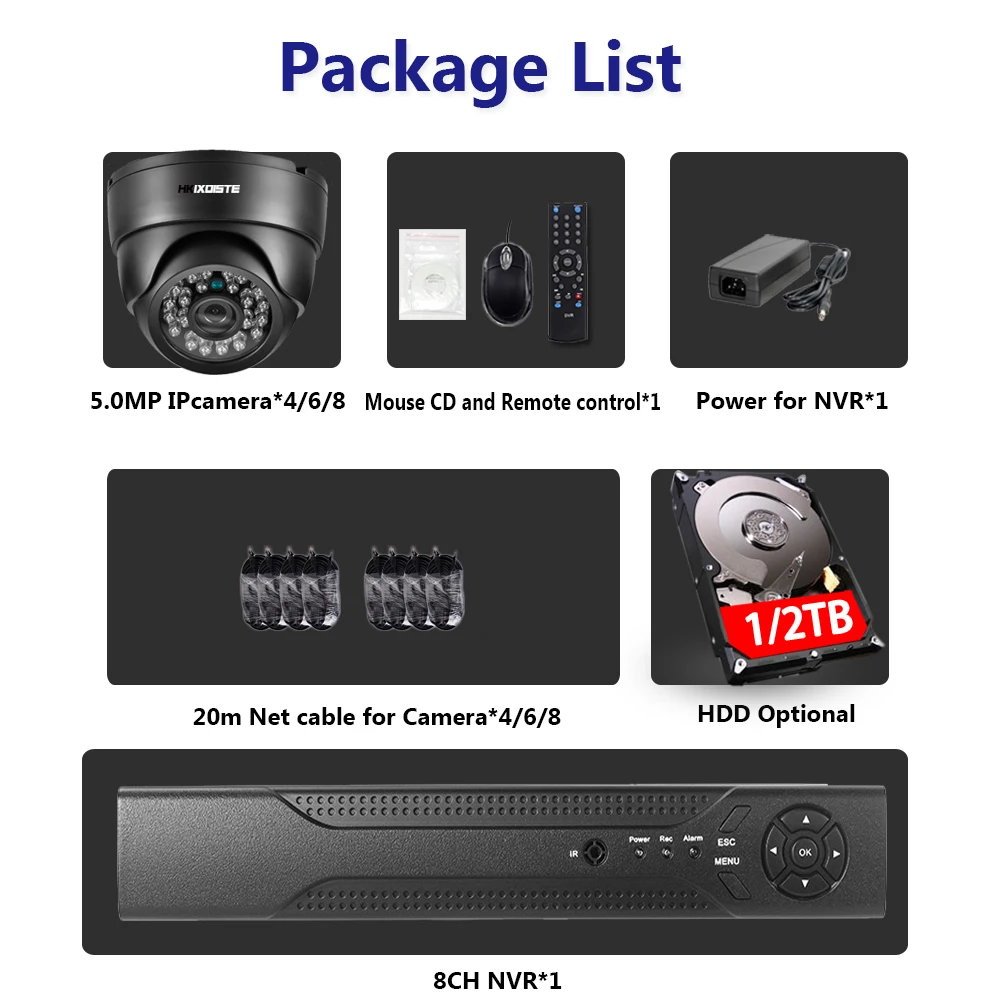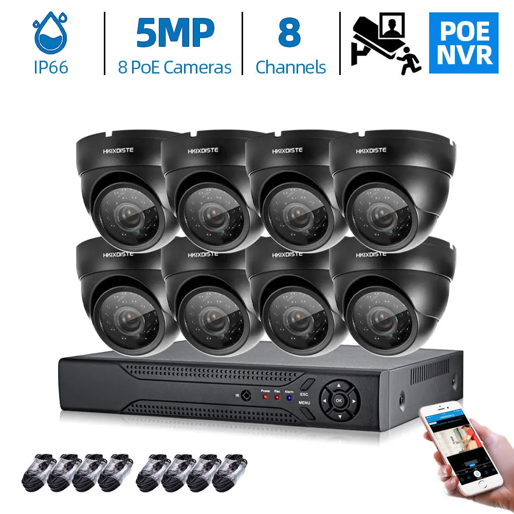 HKIXDISTE 8CH 5MP POE NVR Xmeye CCTV лицевая система 5.0MP In/наружная PoE IP камера ИК Ночное Видение видеонаблюдения наборы