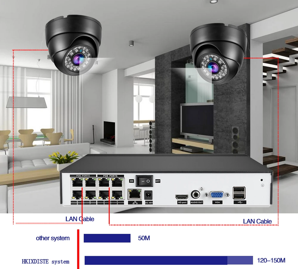 Максимальная поддержка системы POE120-150 мРасстояние передачи кабелей POE, что значительно увеличивает удобство домашней установки.