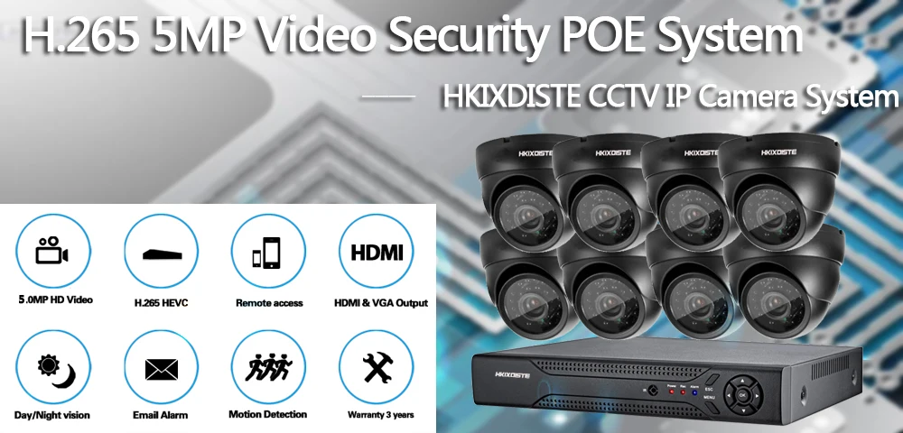 HKIXDISTE безопасность-Система видеонаблюдения,Гарантированное и надежное решение безопасности для вашего дома и бизнеса! 720P/960P/1080P/2MP/3MP/4MP/ 5MP высокое разрешение и видео днем и ночью. Оповещения по электронной почте и обнаружение движения, IP66! Водонепроницаемый и универсальный для наружного/внутреннего использования, бесплатное приложение для P2P облачной функции и хранения, Поддержка android, iPhone , ipad, ПК, CMS и т. Д.