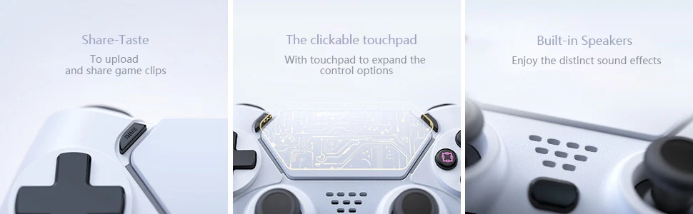 Светильник бар, встроенные динамики и 3,5 мм стерео гарнитура: светильник бар светится разными цветами для даже лучше игровой опыт. Благодаря дизайну звуковых эффектов прямо с этого джойстика ваши игры оживают. С 3,5 мм стерео разъем для подключения гарнитуры дизайн, вы можете наслаждаться кристально чистым звуком в самом лучшем виде.
