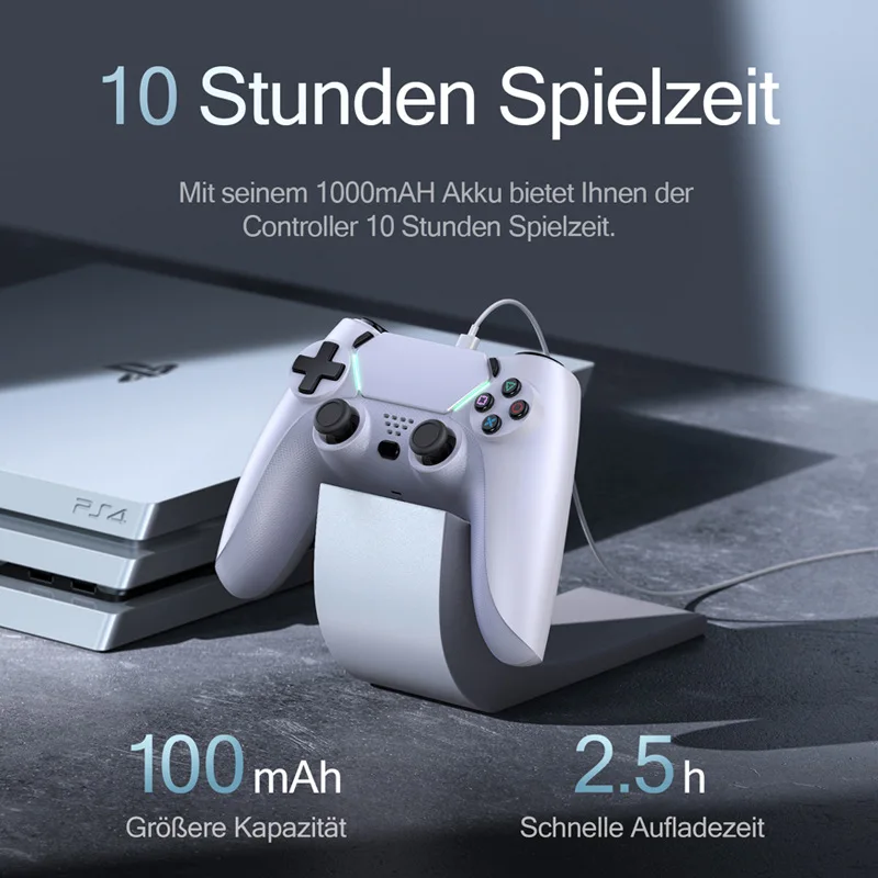 Совместимость с несколькими платформами и огромная емкость: беспроводной контроллер подходит для PS 5 / PS4 / PS4 slim / PS4 Pro / PC / laptop console. Его беспроводная технология, совместимая с Bluetooth, позволяет вам играть без задержки. С литиевой батареей емкостью 800 мАч контроллер предлагает вам 10 часов игрового времени без подзарядки.